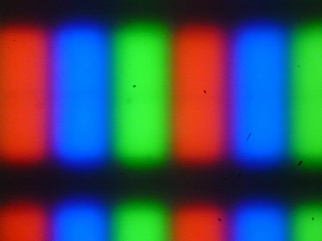 Из-за матовой поверхности экрана четкого изображения пикселей получить не удалось (черные точки — это пыль на матрице фотоаппарата):