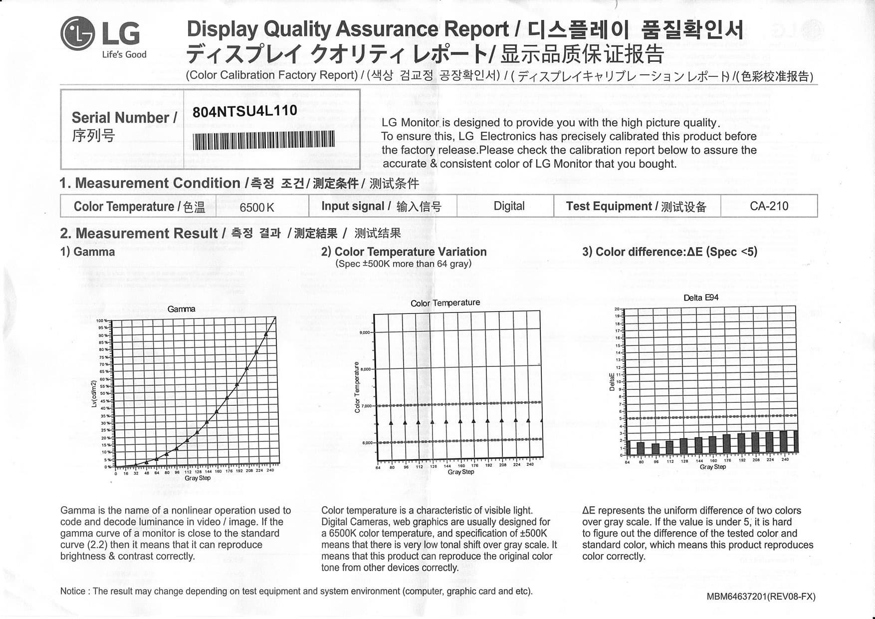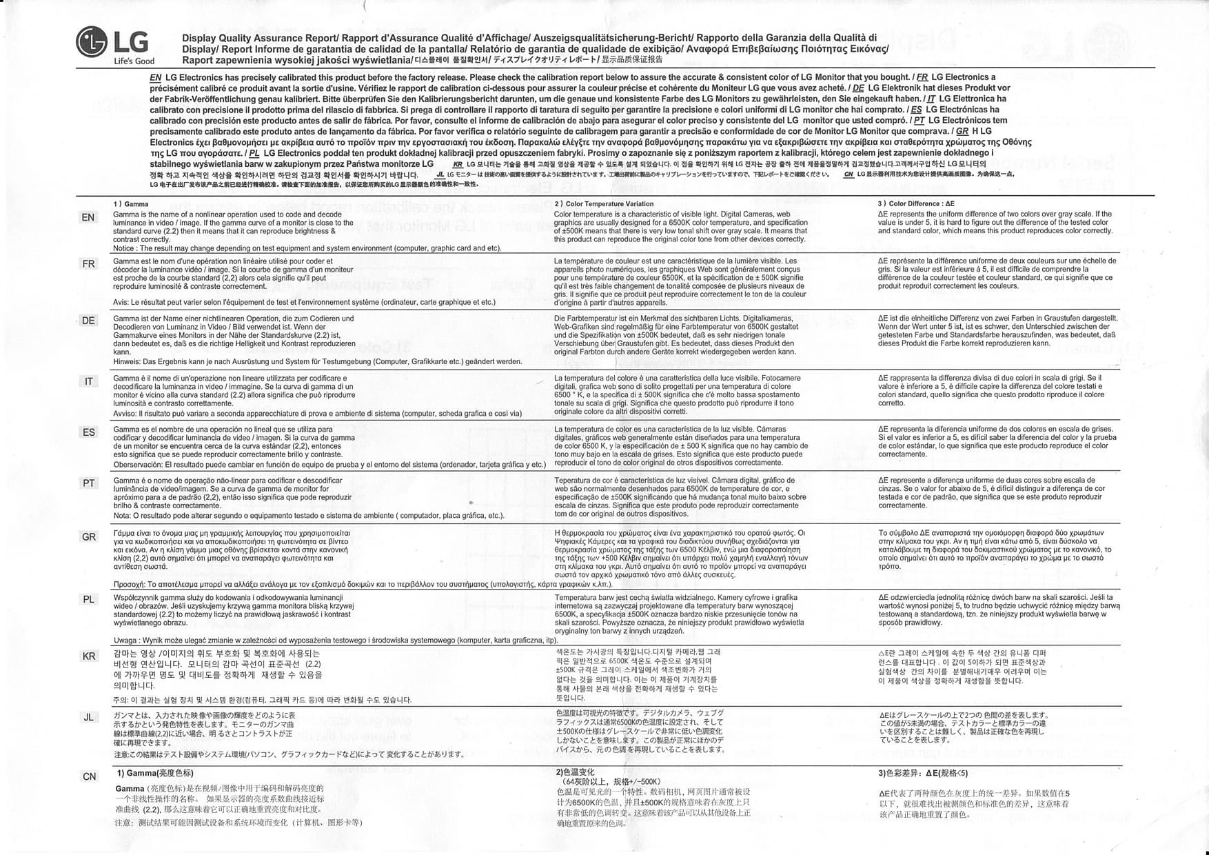 К монитору (к каждому конкретному экземпляру) прилагается отчет о качестве цветового баланса:
