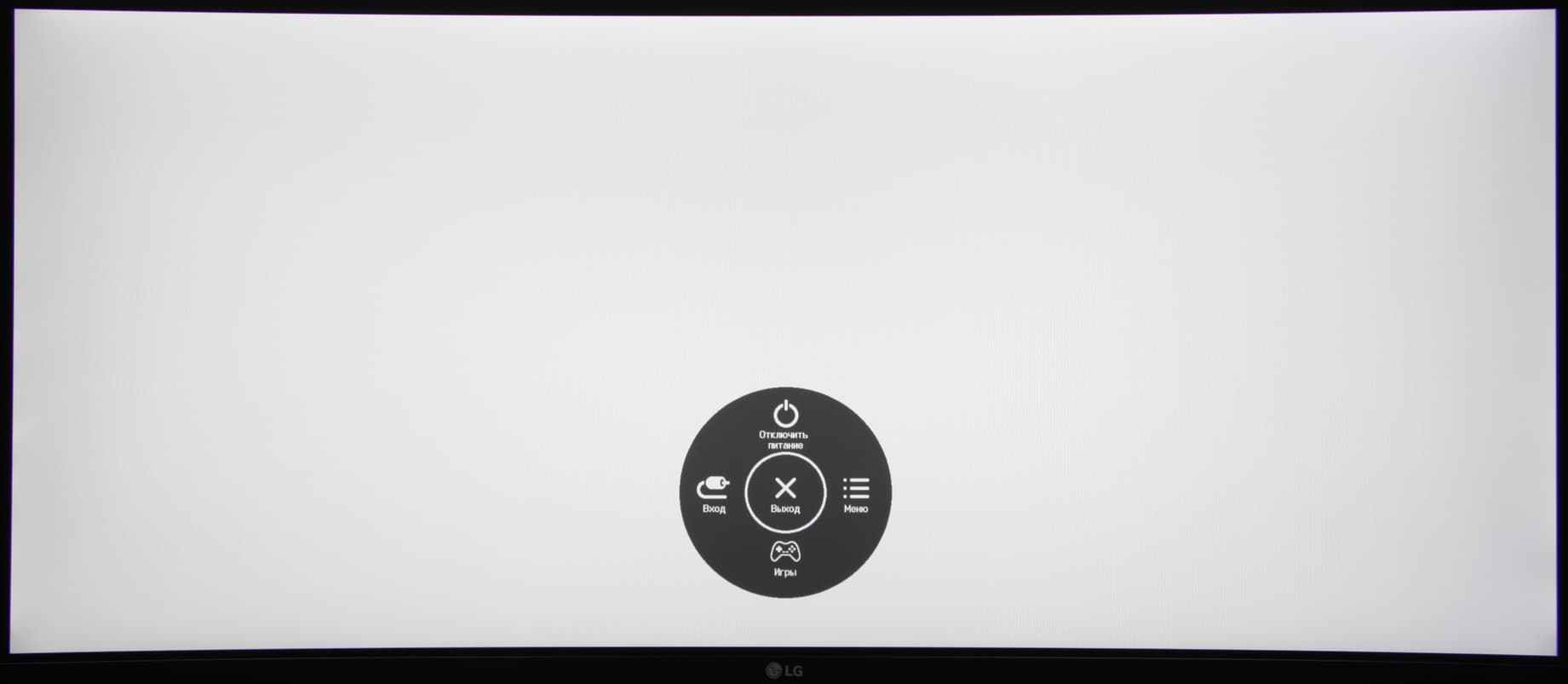 Джойстик при работе неярко подсвечивается белым (отключается в меню), редко мигает белым в режиме ожидания и не горит, если монитор условно выключен. Когда на экране нет меню, то отклонение джойстика влево или вправо выводит ползунок громкости, а вверх или вниз — информацию о текущем входе. Короткое нажатие выводит стартовое круглое меню.