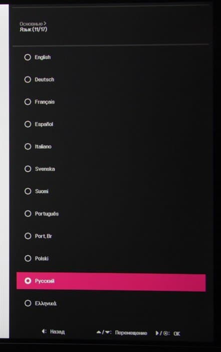 При этом сами надписи в меню мелкие и широко разнесены по вертикали. Благодаря логике переходов и джойстику, с которого не нужно снимать палец, навигация по меню очень удобная и быстрая. Чтобы предотвратить нежелательное изменение настроек, можно включить частичную блокировку пунктов меню. Есть русская версия экранного меню. Кириллический шрифт меню ровный, надписи читаемые. Качество перевода на русский язык приемлемое.