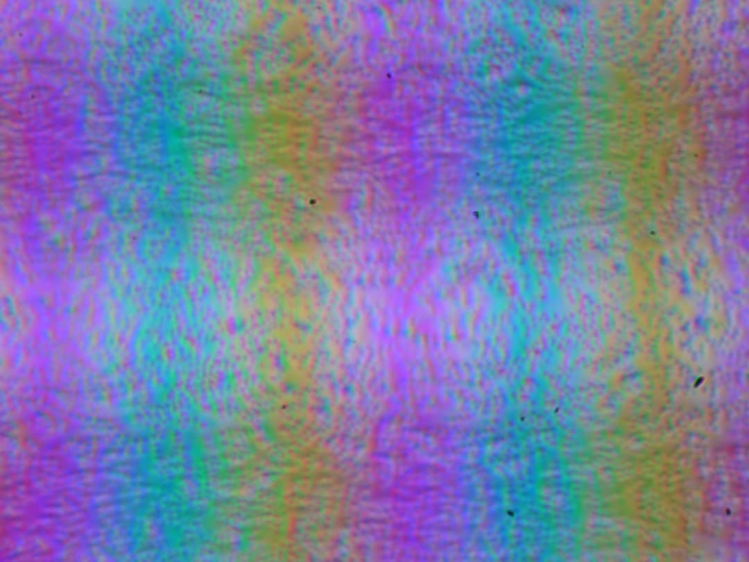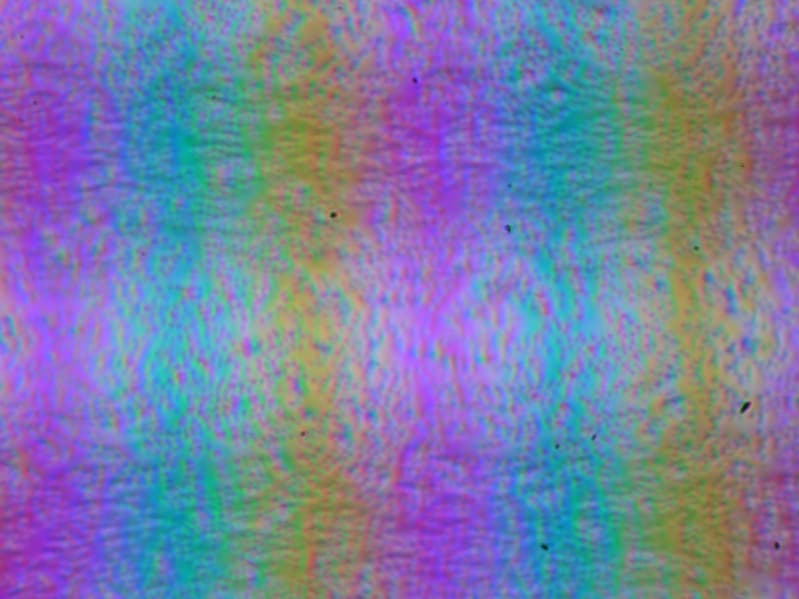 Зерно этих дефектов в несколько раз меньше размеров субпикселей (масштаб этих двух фотографий одинаковый), поэтому фокусировка на микродефектах и «перескок» фокуса по субпикселям при изменении угла зрения выражены слабо, из-за этого нет и «кристаллического» эффекта.