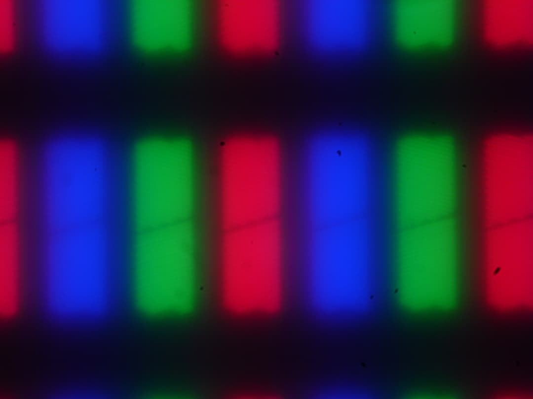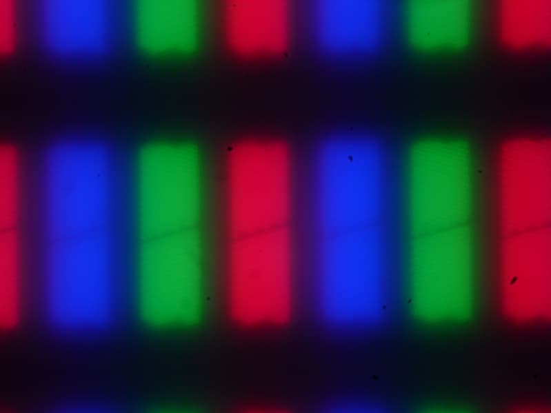 Изображение структуры пикселей из-за матовой поверхности размыто, но характерную для IPS структуру распознать можно:
