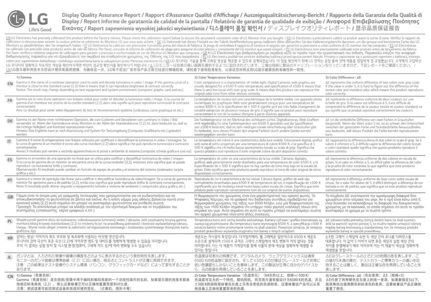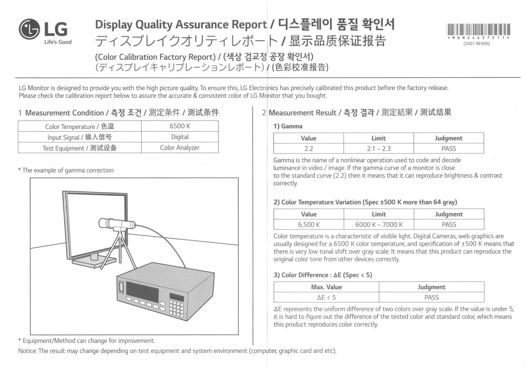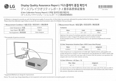 К монитору прилагается отчет о качестве цветового баланса: