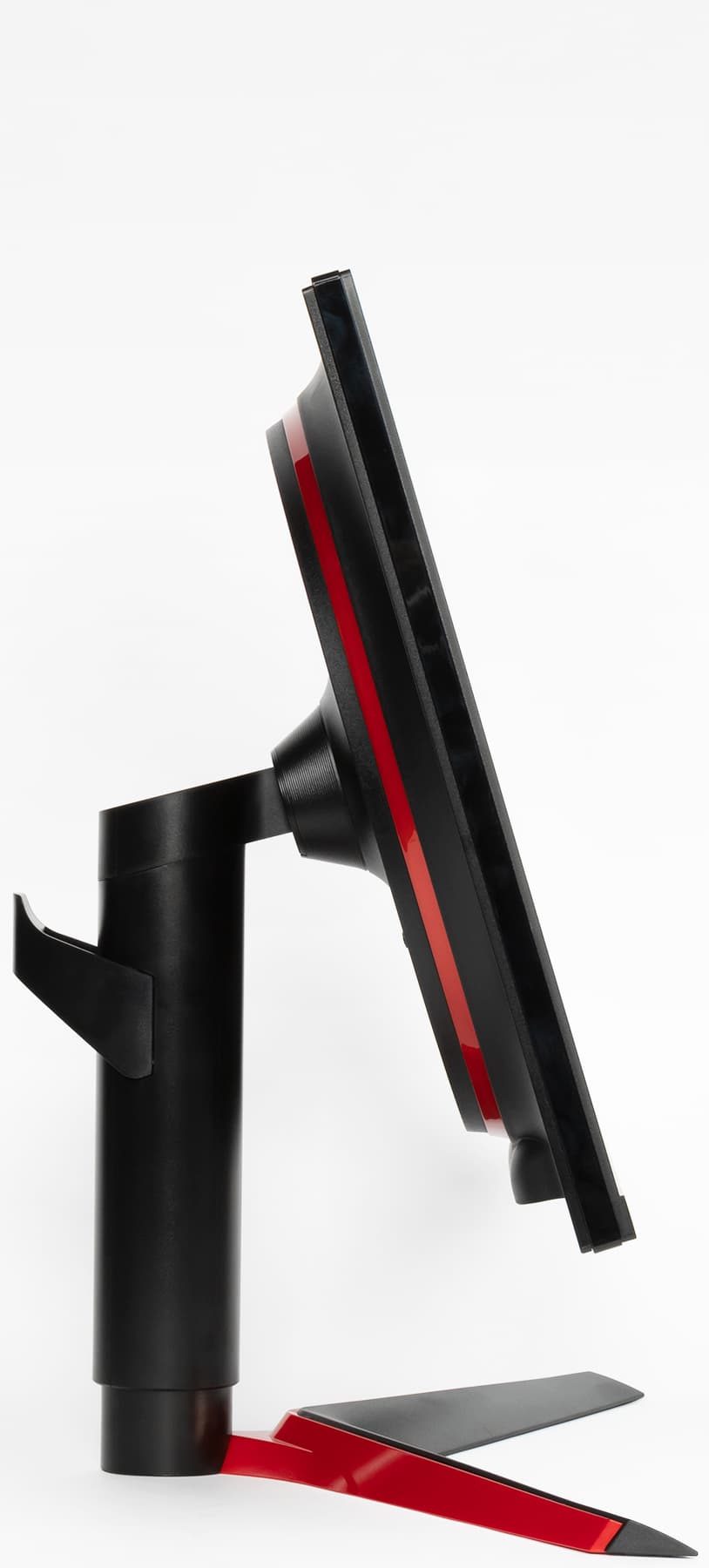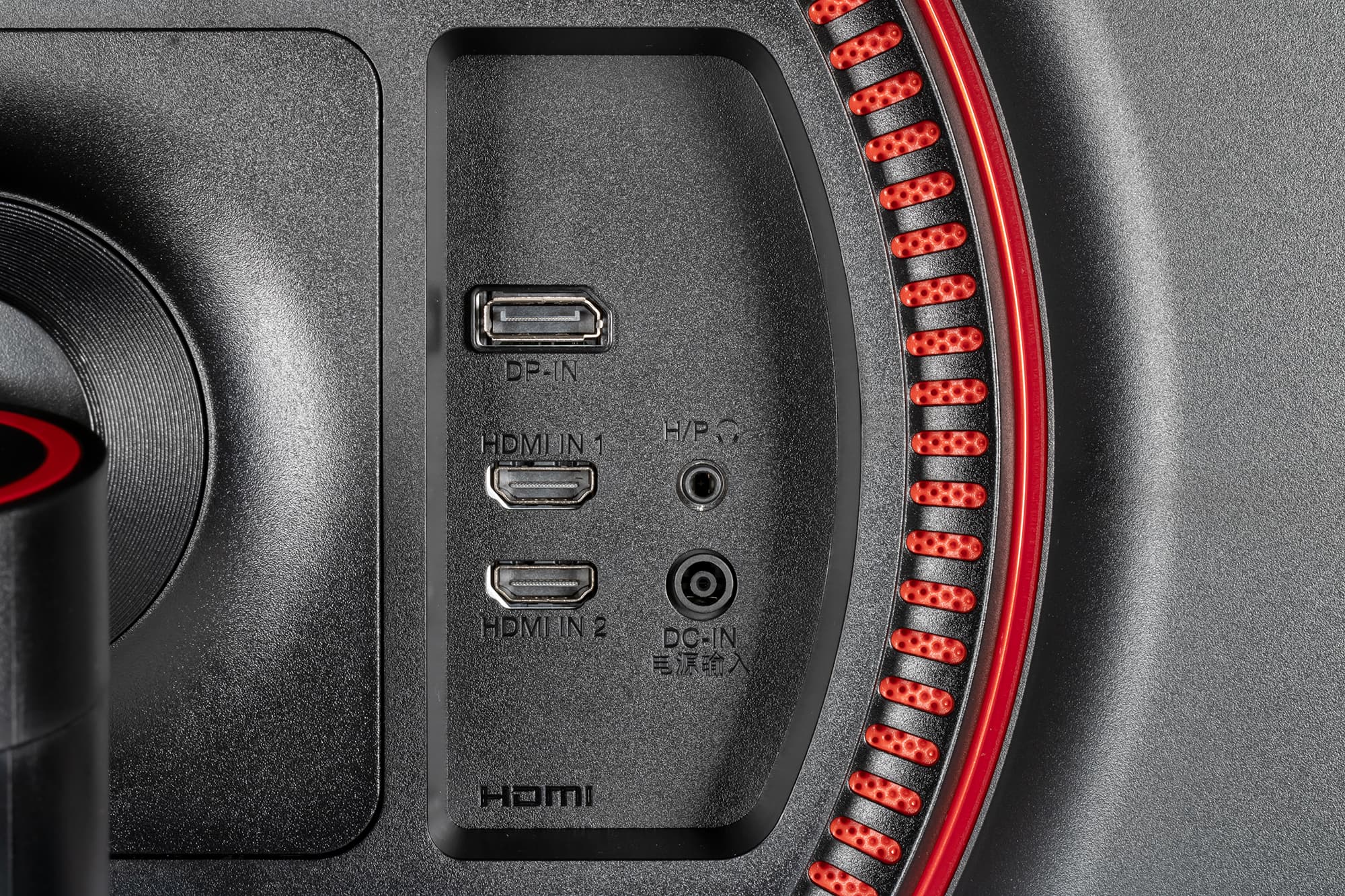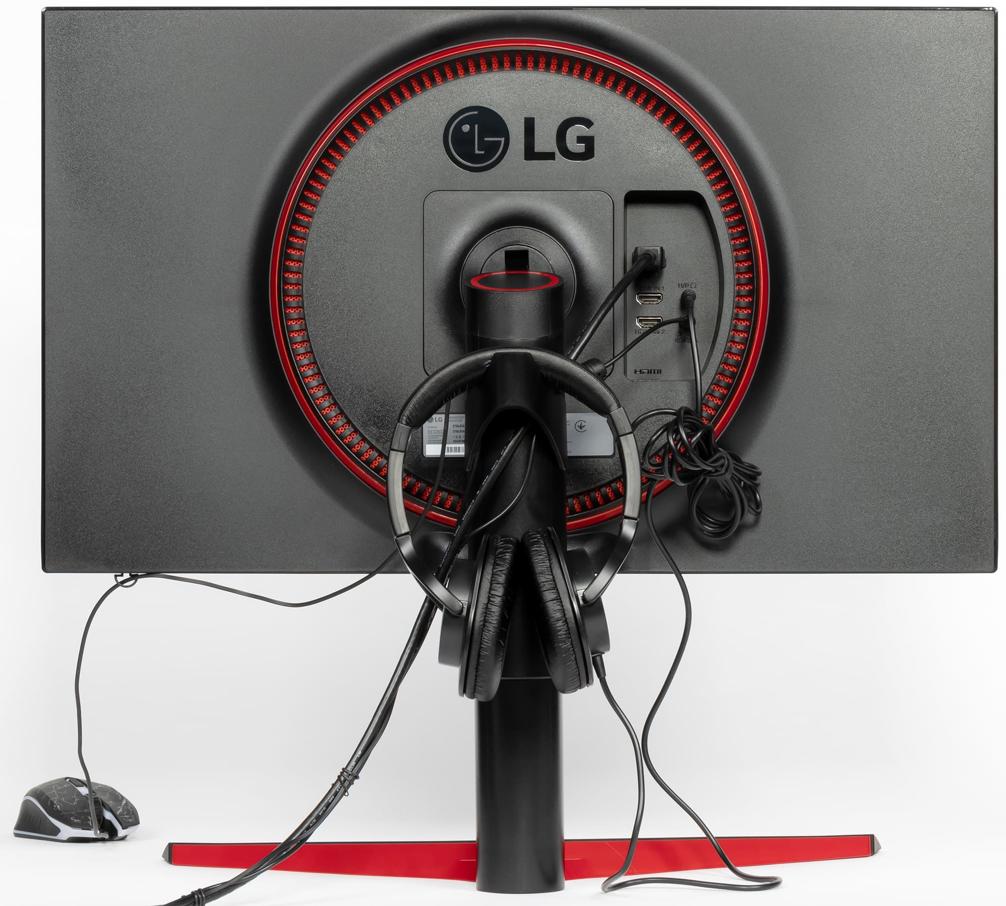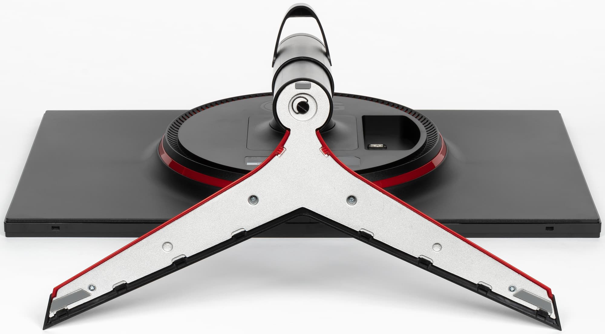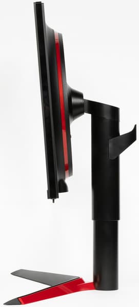 Панели корпуса блока экрана, а также кожухи подставки изготовлены из черного пластика в основном с матовой поверхностью. Но встречаются и глянцевые участки — логотип на задней панели и обрамление блока экрана. Умеренное разнообразие привносят вставки из красного пластика с глянцевой поверхностью. Внешняя поверхность матрицы черная, полуматовая, зеркальность выражена. Экран выглядит как монолитная поверхность, ограниченная снизу пластиковой планкой, а сверху и с боков — узкой пластиковой окантовкой. Выведя изображение на экран, можно увидеть, что на самом деле между внешними границами экрана и собственно областью отображения есть неширокие поля — по 6 мм до окантовки сверху и по бокам и 3 мм до планки снизу.