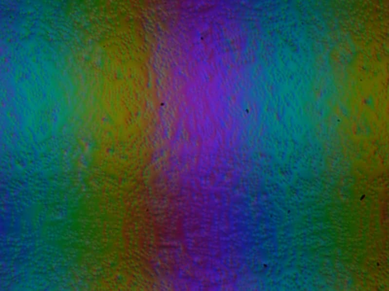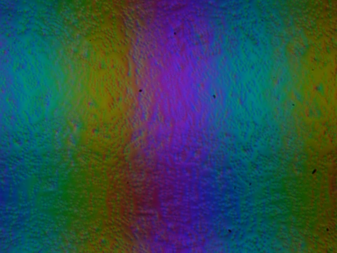 Зерно этих дефектов в несколько раз меньше размеров субпикселей (масштаб этих двух фотографий одинаковый), поэтому фокусировка на микродефектах и «перескок» фокуса по субпикселям при изменении угла зрения выражены слабо, из-за этого нет и «кристаллического» эффекта.