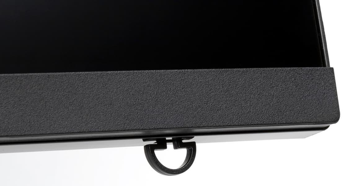 Кроме того, блок экрана можно перевернуть по часовой стрелке в портретную ориентацию. Подставка на блок экрана крепится на защелках одним движением, а отсоединяется также просто, при удерживании кнопки фиксатора. Подставку можно отсоединить (или не подсоединять изначально) и закрепить блок экрана на VESA-совместимом кронштейне с отверстиями по углам квадрата со стороной 100 мм.