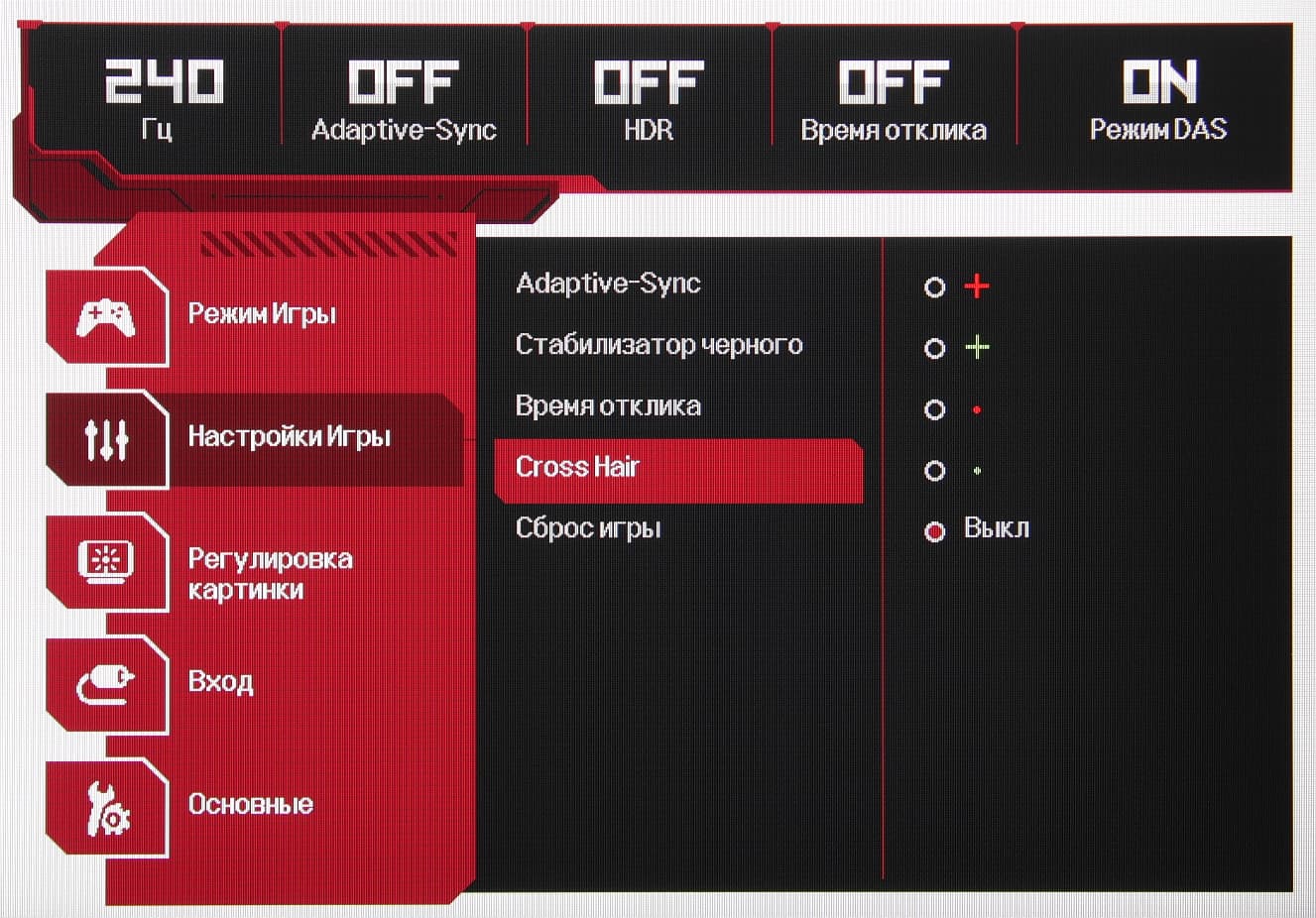 Из дополнительных возможностей присутствует одна «геймерская» функция: вывод в центре экрана прицела выбранной формы.