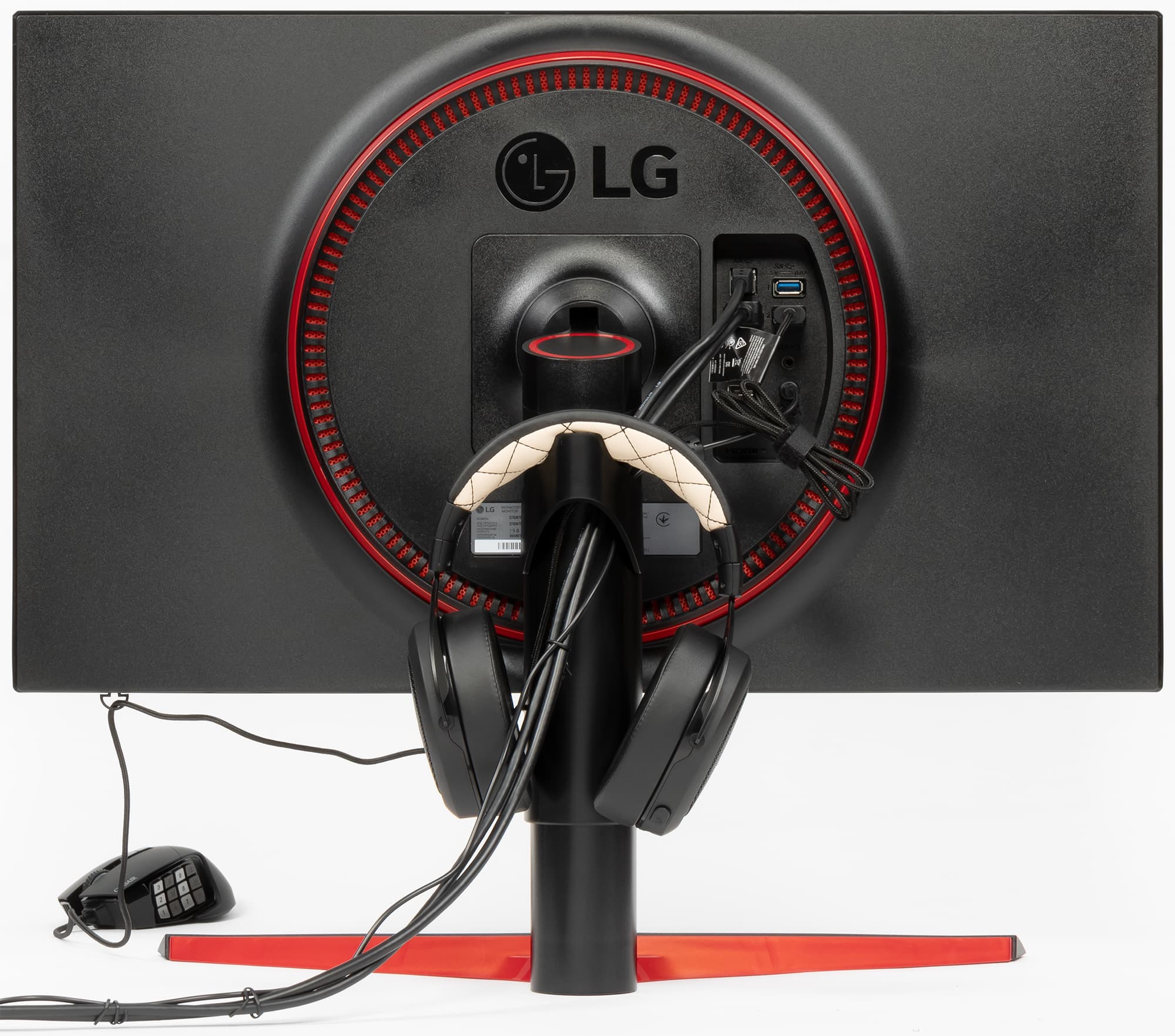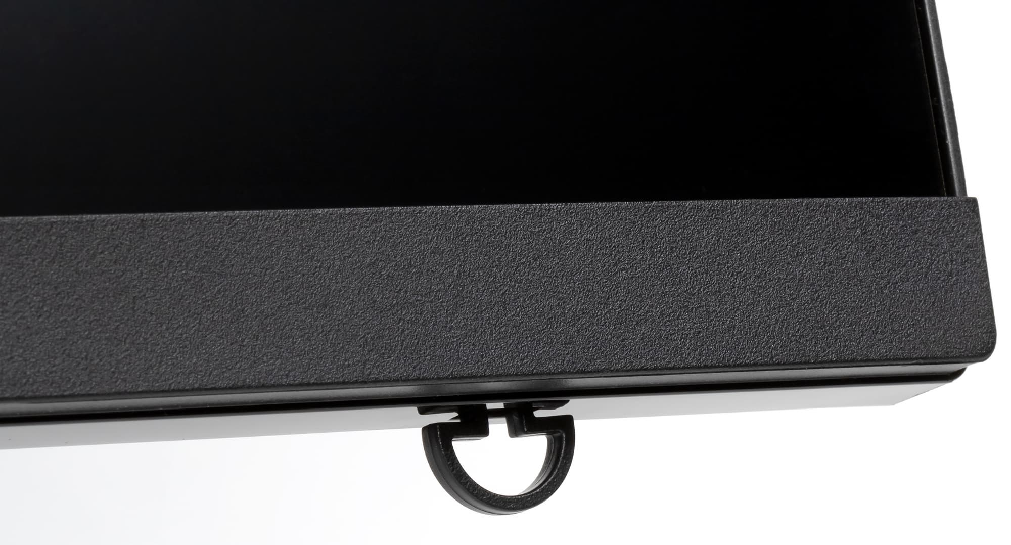 Подключать кабели к этим разъемам удобно. На стойке подставки можно закрепить входящую в комплект скобу, которая прижмет отходящие от монитора кабели и одновременно будет служить крюком для наушников.