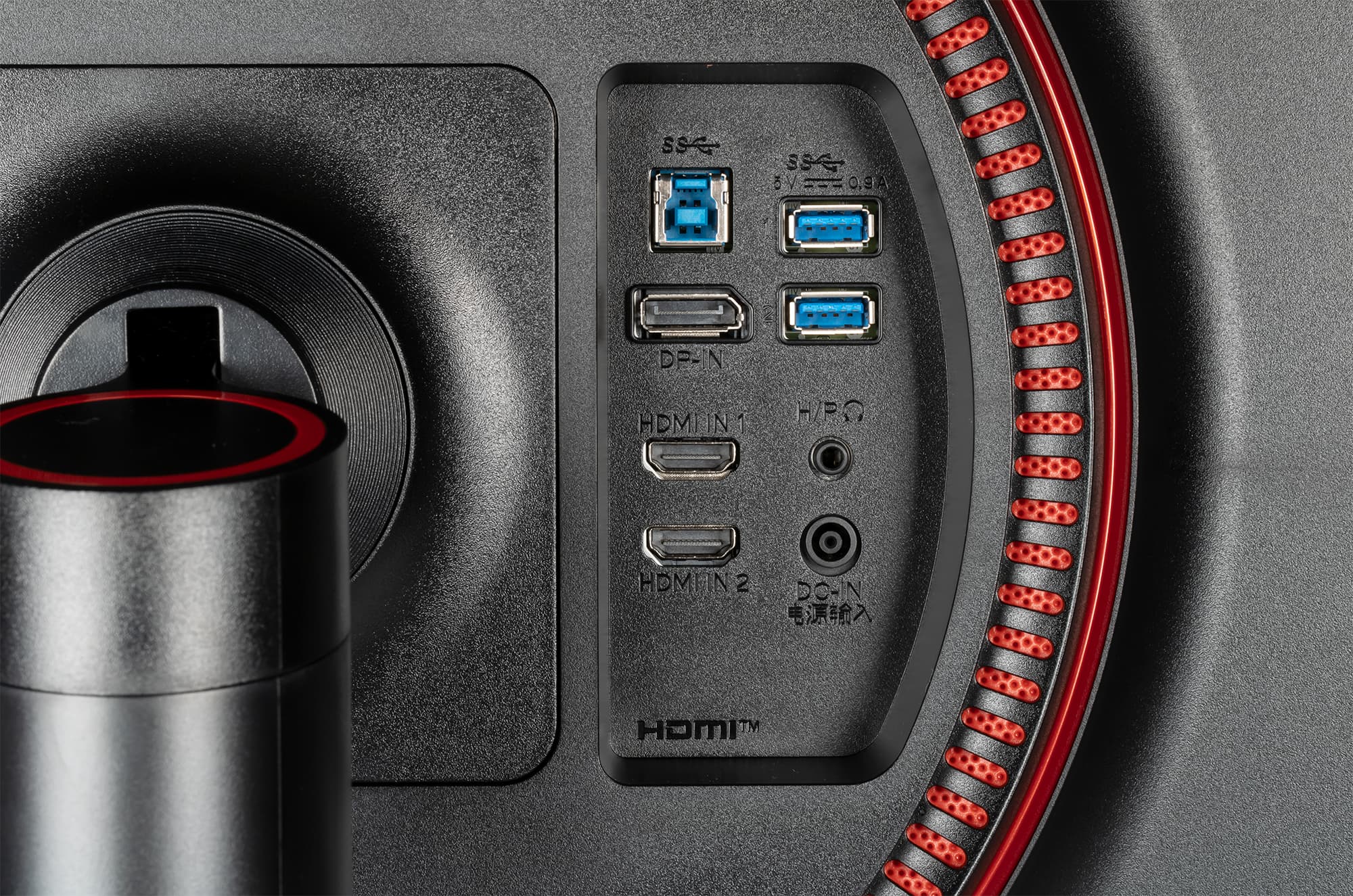 Монитор оснащен тремя цифровыми видеовходами: одним DisplayPort и двумя HDMI, все в полноразмерном варианте. Входы выбираются в меню (в быстром или полном), кроме того, монитор предлагает переключиться на активный вход, если на текущем сигнал пропал или его не было при включении монитора. Входы HDMI и DisplayPort способны принимать цифровые аудиосигналы (только PCM стерео), которые выводятся после преобразования в аналоговый вид через гнездо миниджек 3,5 мм — выход на наушники. Мощности выхода на наушники хватило, чтобы в 32-омных наушниках с чувствительностью 92 дБ был большой запас по громкости. Качество звука в наушниках хорошее — звук чистый, воспроизводится широкий диапазон частот, разве что немного не хватает самых низких частот, в паузах шума не слышно. В монитор встроен концентратор USB (3.0) с одним входом и двумя выходами.