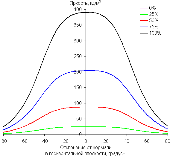 Чтобы выяснить, как меняется яркость экрана при отклонении от перпендикуляра к экрану, мы провели серию измерений яркости черного, белого и оттенков серого в центре экрана в широком диапазоне углов, отклоняя ось датчика в вертикальном, горизонтальном и диагональном направлениях.