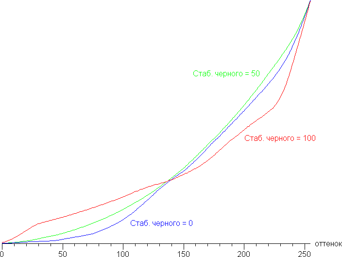 черного. Вот, что получается при крайних значениях (0 и 100; по умолчанию — 50):