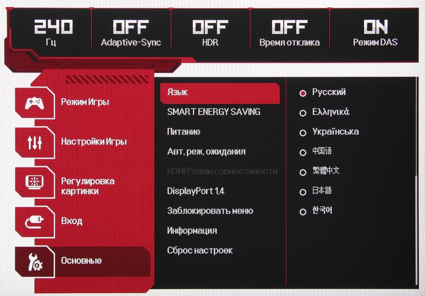 | DisplayPort / — / 240 Гц | 4,2 мс |