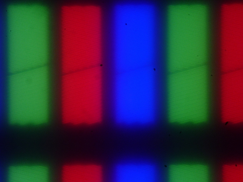 Изображение структуры пикселей из-за матовой поверхности размыто, но характерную для IPS структуру распознать можно: