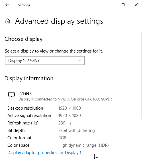 При подключении к компьютеру по DisplayPort и HDMI поддерживалось разрешение до 1920×1080 при 240 Гц кадровой частоты на вход, и вывод изображения на экран также осуществлялся с этой частотой. При таком разрешении и частоте обновления поддерживаются 8 бит на цвет (кодирование RGB).