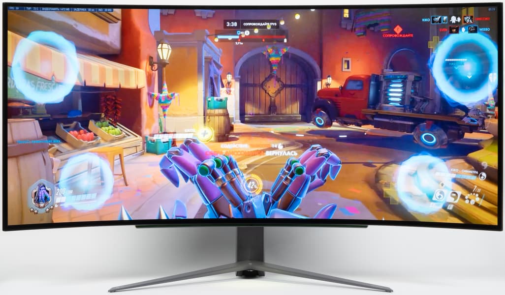 Технология OLED, с помощью которой формируется изображение на экране данного монитора, позволяет получить картинку высочайшего качества с настоящим черным цветом, насыщенными яркими цветами, отличными углами обзора и без каких-либо артефактов в динамике. LG UltraGear OLED 45GR95QE-B — это игровой монитор самого высокого класса. У него большой экран с высоким разрешением, есть поддержка частоты обновления до 240 Гц включительно, AMD FreeSync и Nvidia G-Sync Compatible, ряда игровых функций, а также хорошая реализация HDR. Дополнительно монитор выделяет статичная или динамичная многоцветная подсветка. Монитор хорош для любых игр и, например, для просмотра кино, при этом изогнутый широкоформатный дисплей способствует лучшему погружению в происходящее на экране.