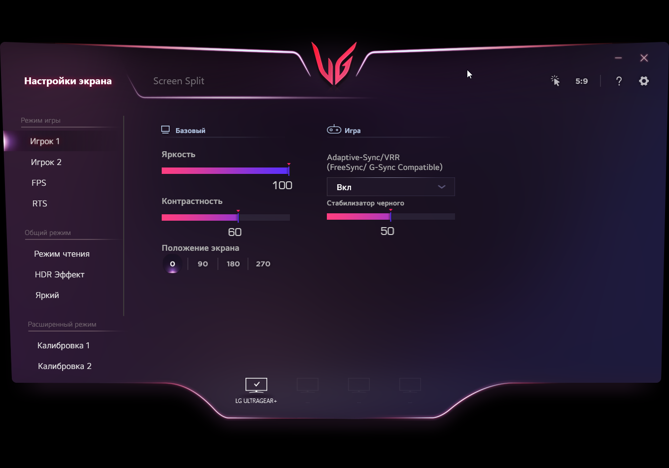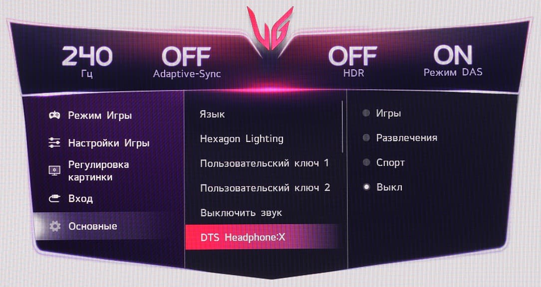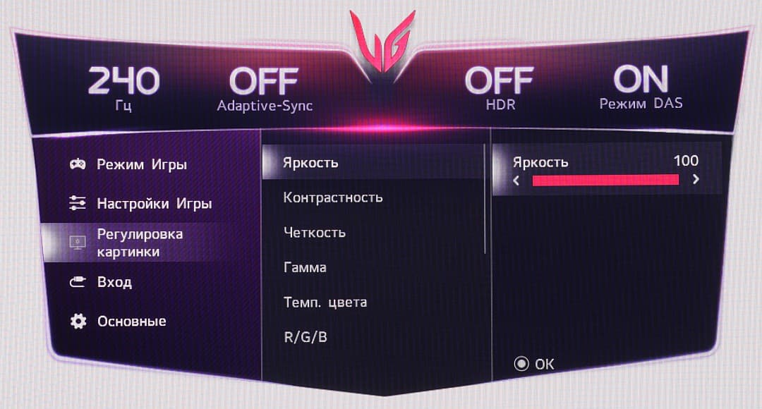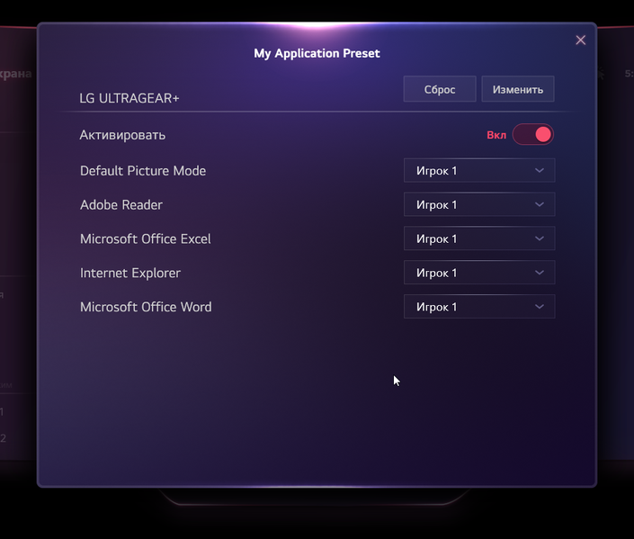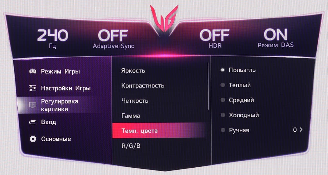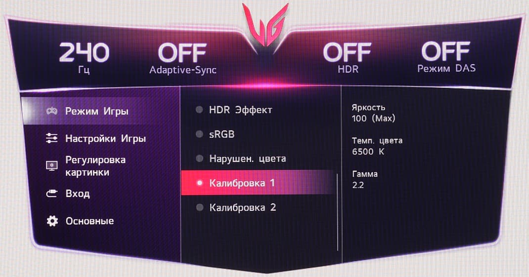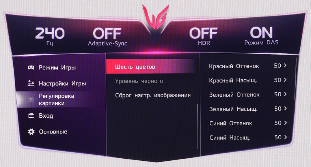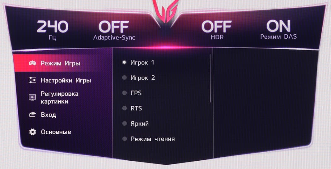 Есть несколько предустановленных профилей (список Режим игры) с заданными значениями настроек изображения. В ряде профилей часть настроек изменить нельзя.