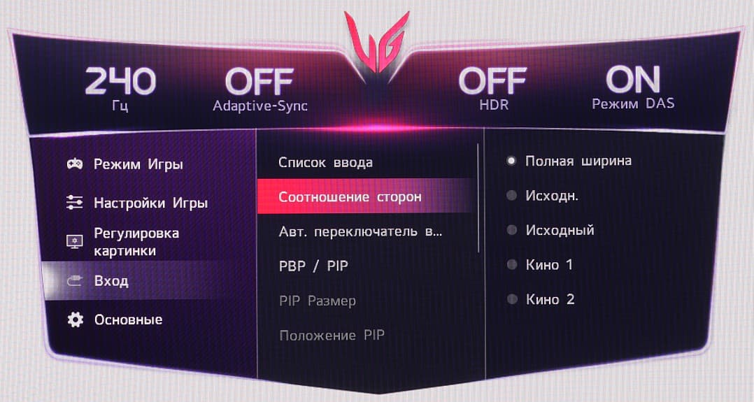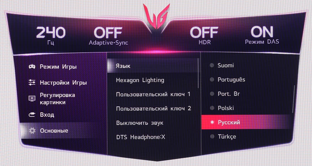 Есть русская версия экранного меню. Кириллический шрифт меню ровный, надписи читаемые. Качество перевода на русский язык хорошее.