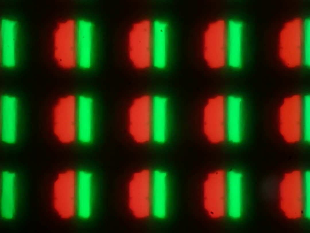 Изображение структуры пикселей из-за полуматовой поверхности слегка размыто. Фотографии при большем увеличении: