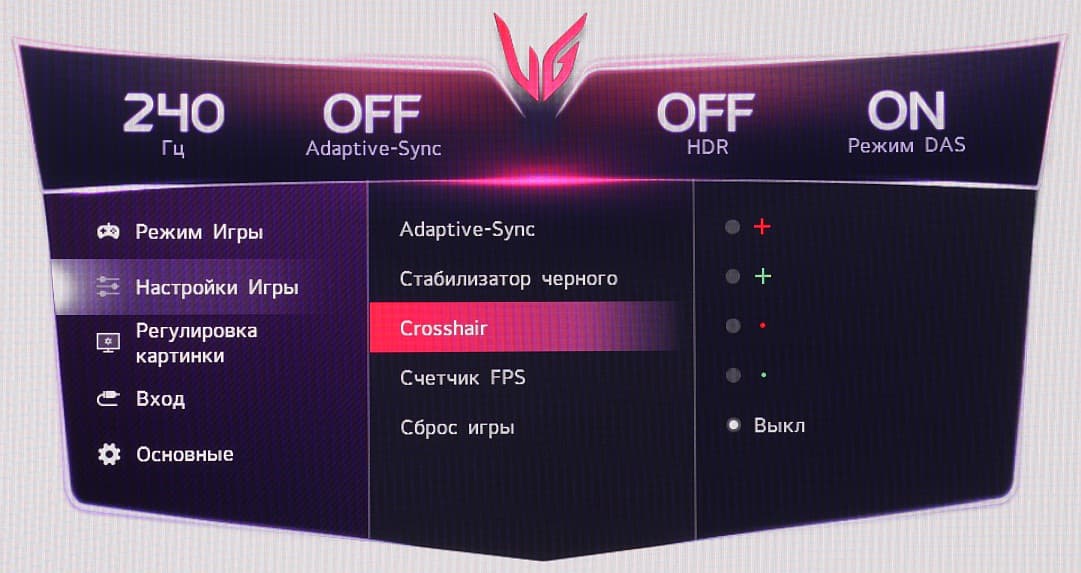 Из дополнительных возможностей присутствуют две «геймерские» функции: вывод в центре экрана прицела выбранной формы и цвета или счетчика частоты кадров в одном из углов, но одновременно выводится только что-то одно.