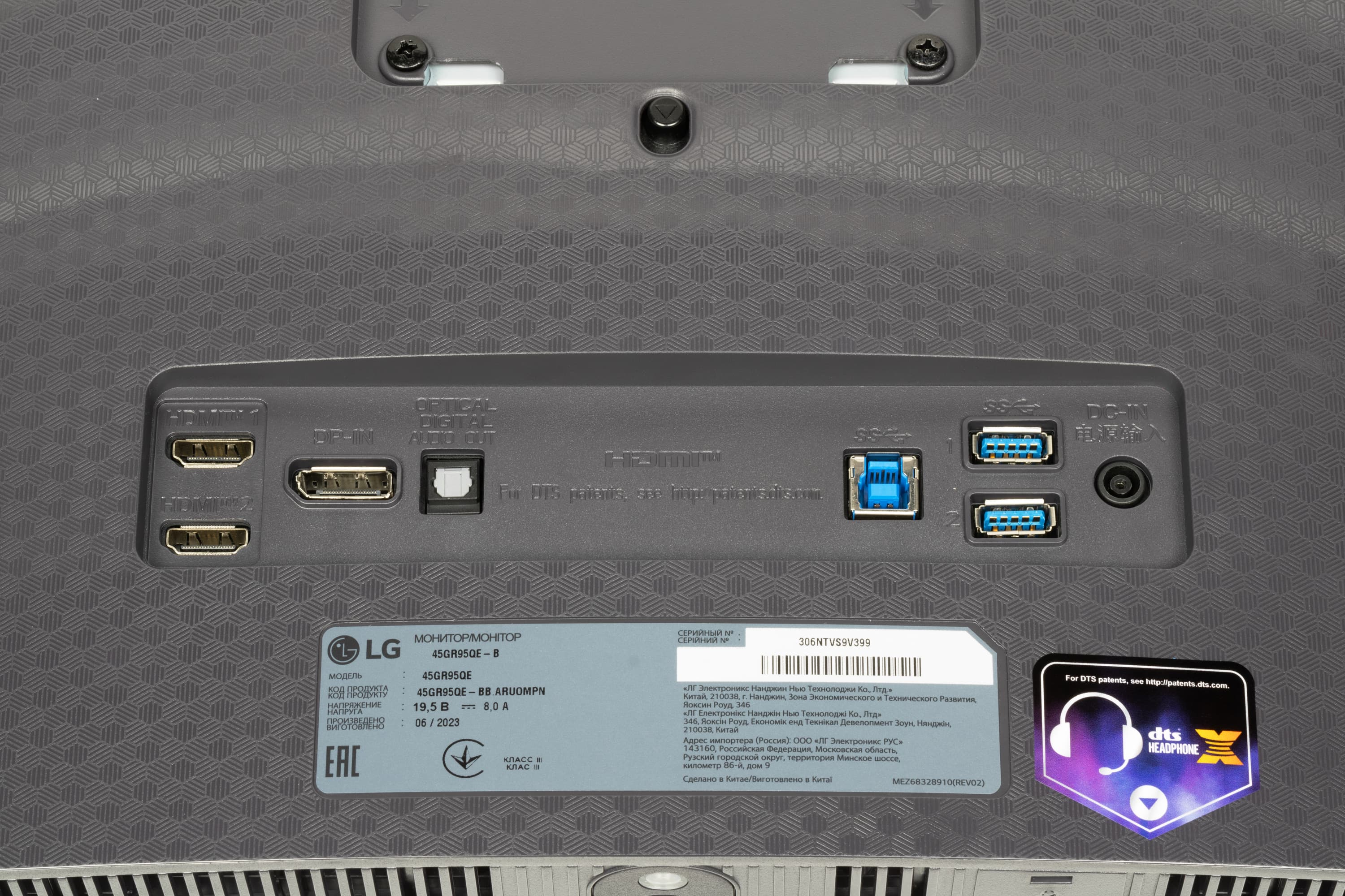 Разъем питания и большинство интерфейсных разъемов размещены в неглубокой нише на задней панели и ориентированы назад. Подключаться к этим разъемам удобно. На стойке подставки можно закрепить специальный фиксатор, и с его помощью прижать к стойке отходящие от разъемов кабели.