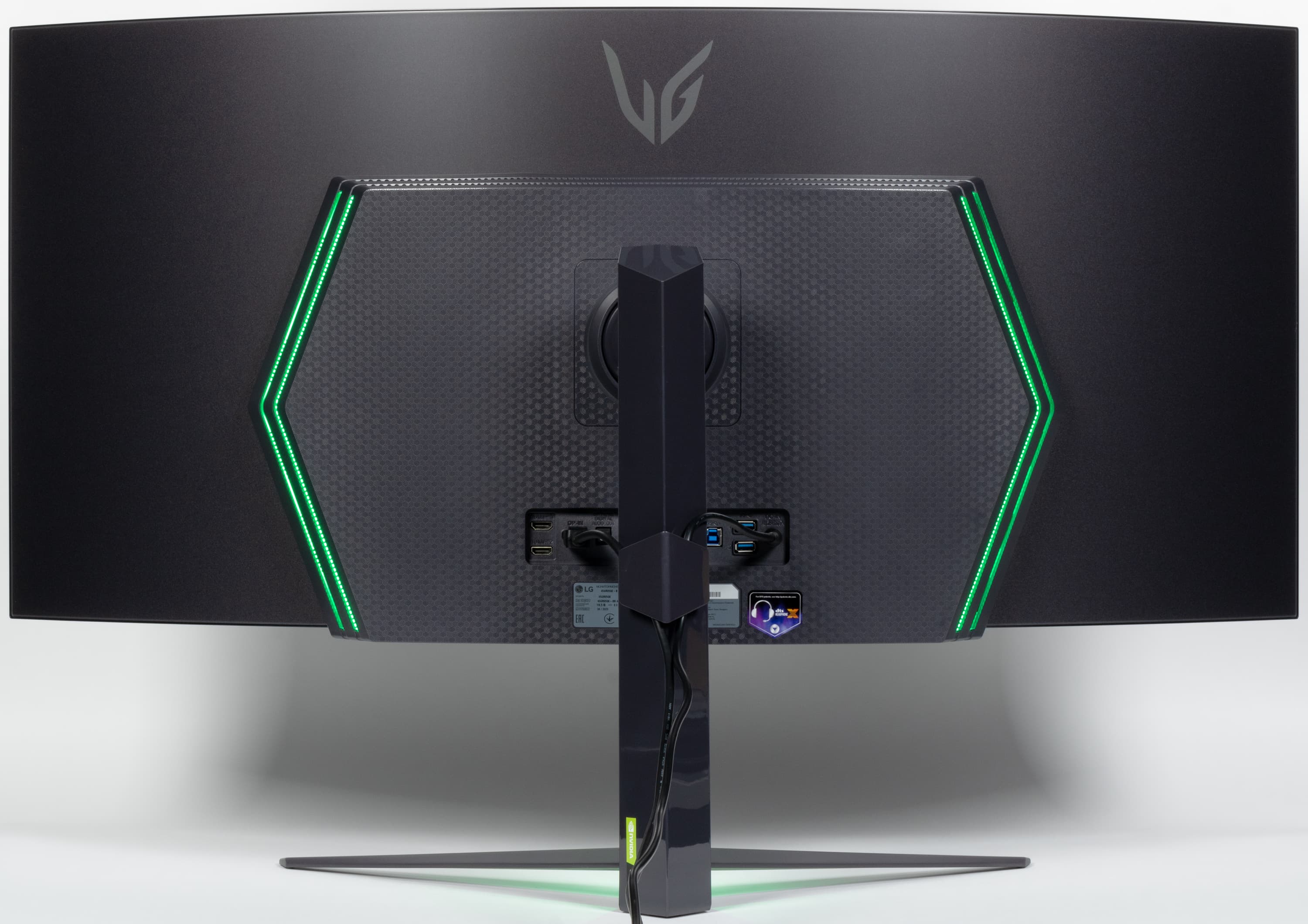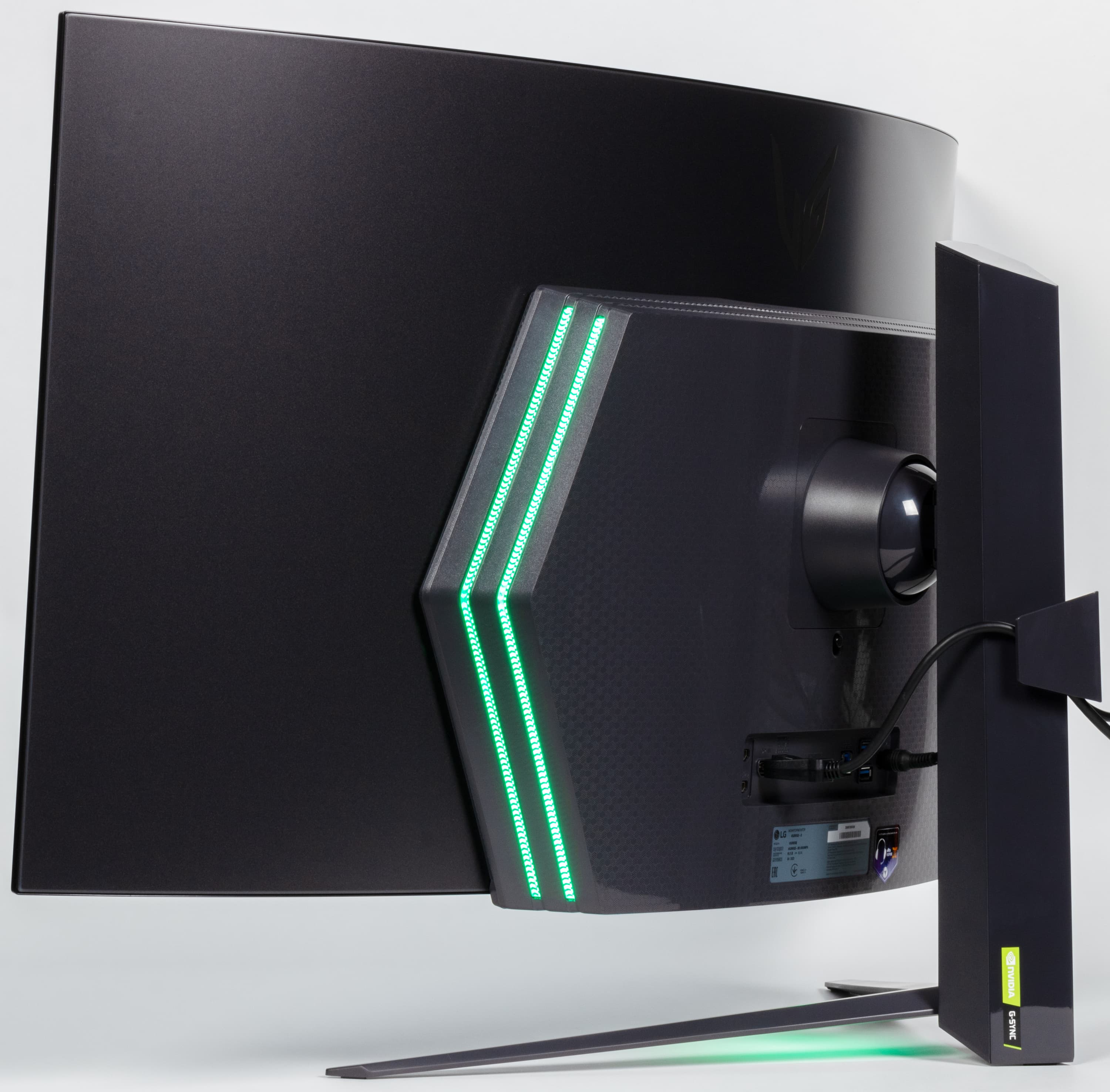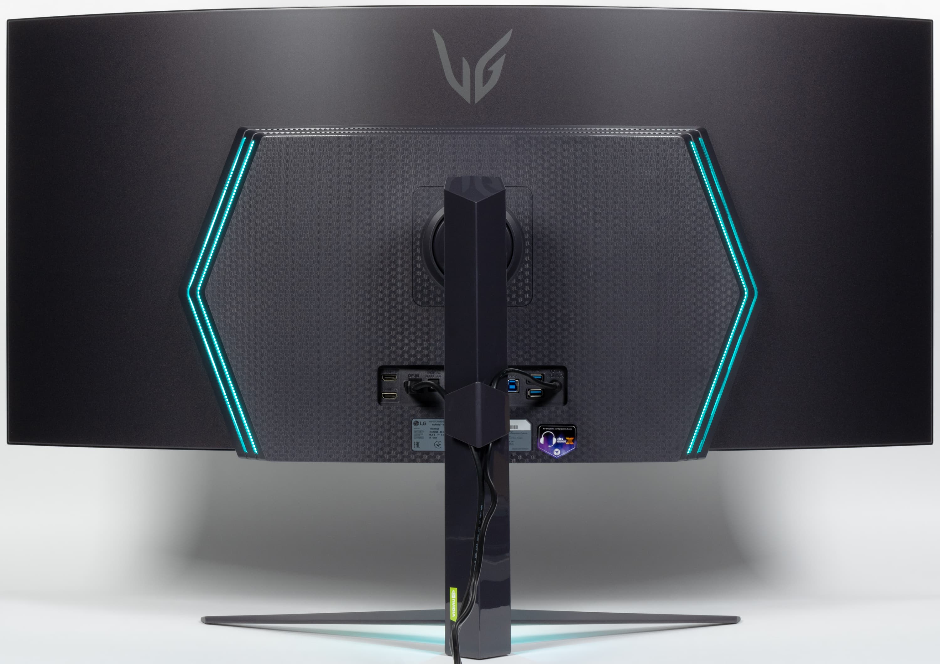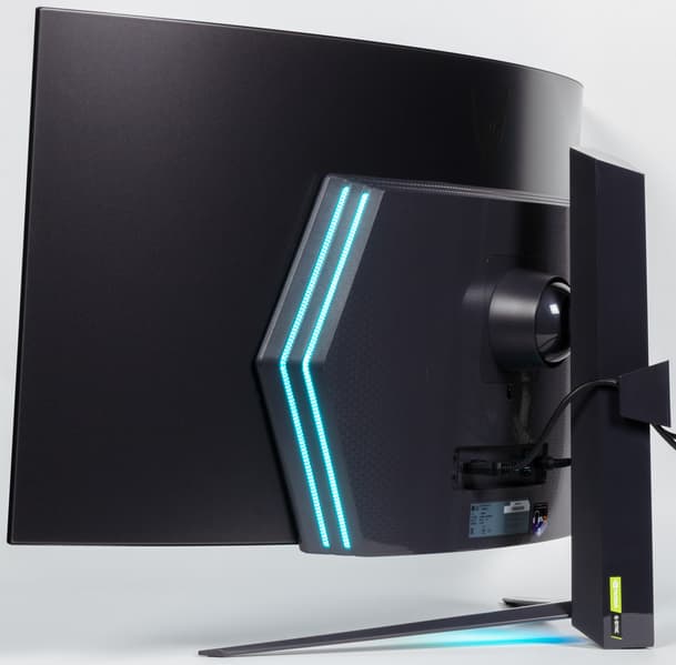 На пластиковом кожухе блока экрана сверху и снизу есть вентиляционные решетки, а по бокам — вставки из прозрачного пластика, подсвечиваемые RGB-светодиодами.
