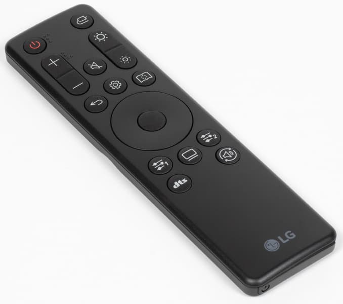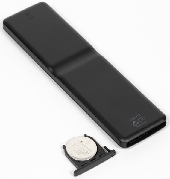Учитывая размер экрана и то, что пользователь с большой вероятностью будет находиться дальше, чем на расстоянии вытянутой руки от экрана, такой способ управления будет востребован. Корпус пульта изготовлен из черного пластика с матовой поверхностью. Работает пульт от одного элемента питания типа CR2025.
