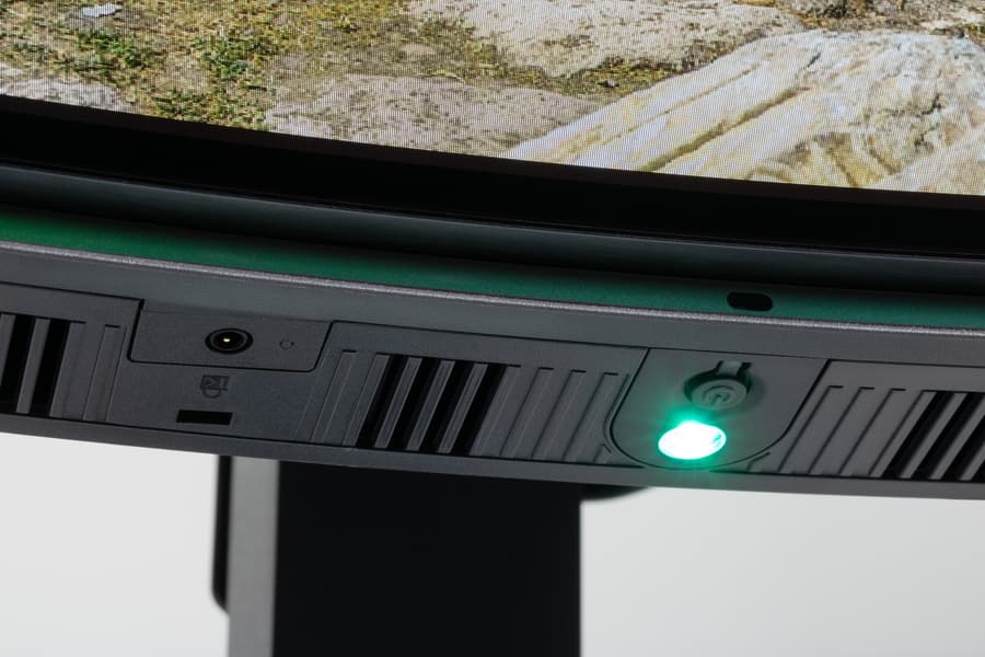 При включении монитора раздается негромкий звуковой сигнал (его можно отключить в настройках). Индикатор питания отсутствует. Единственная кнопка на самом мониторе имеет очень ограниченную функциональность, предполагается, что пользователь в основном будет использовать ИК-пульт ДУ.