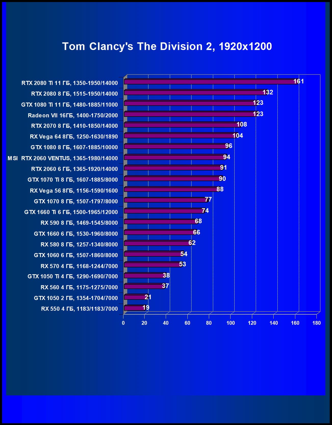 Рейтинг ускорителей iXBT.com демонстрирует нам функциональность видеокарт друг относительно друга и нормирован по самому слабому ускорителю — Radeon RX 550 (то есть сочетание скорости и функций RX 550 приняты за 100%). Рейтинги ведутся по 22 ежемесячно исследуемым нами акселераторам в рамках проекта Лучшая видеокарта месяца. Из общего списка выбирается группа карт для анализа, куда входят RTX 2060 и его конкуренты.