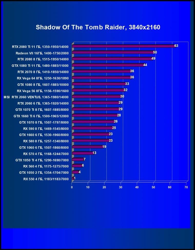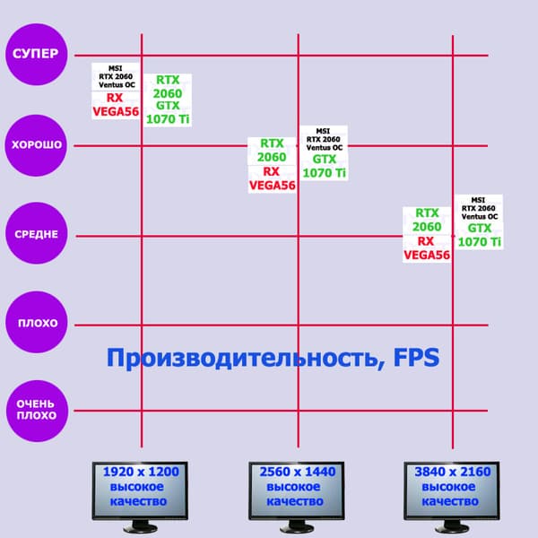 Если следовать логике наименований, то на смену GeForce GTX 1070 и GeForce GTX 1070 Ti должен был придти GeForce RTX 2070, но в реальности их обгоняет даже GeForce RTX 2060. Из стана AMD конкурентом RTX 2060 на сегодня является Radeon RX Vega 56.
