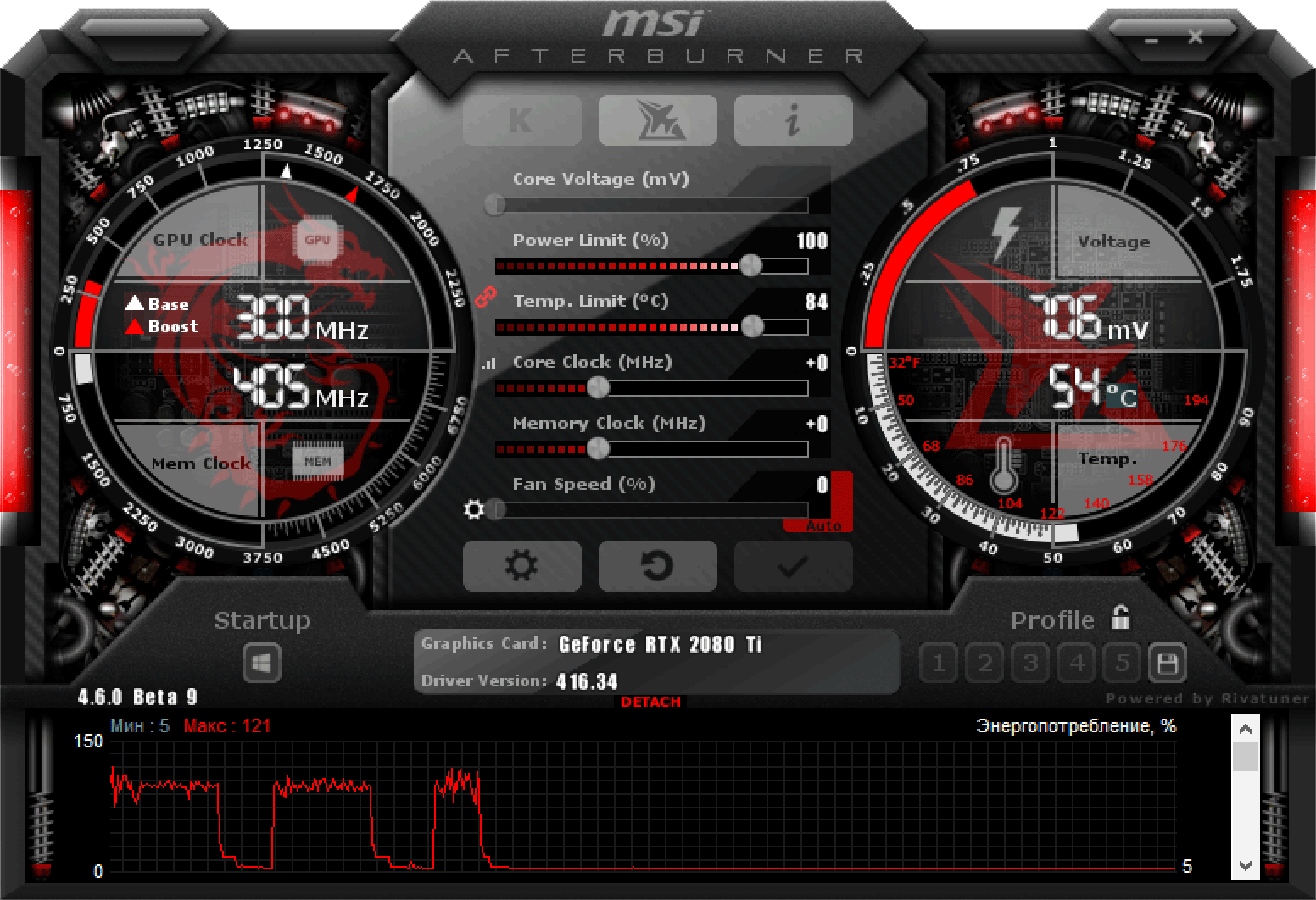 Управление работой карты обеспечивается с помощью фирменной утилиты MSI Afterburner (автор А. Николайчук AKA Unwinder), которую можно скачать с сайта производителя.