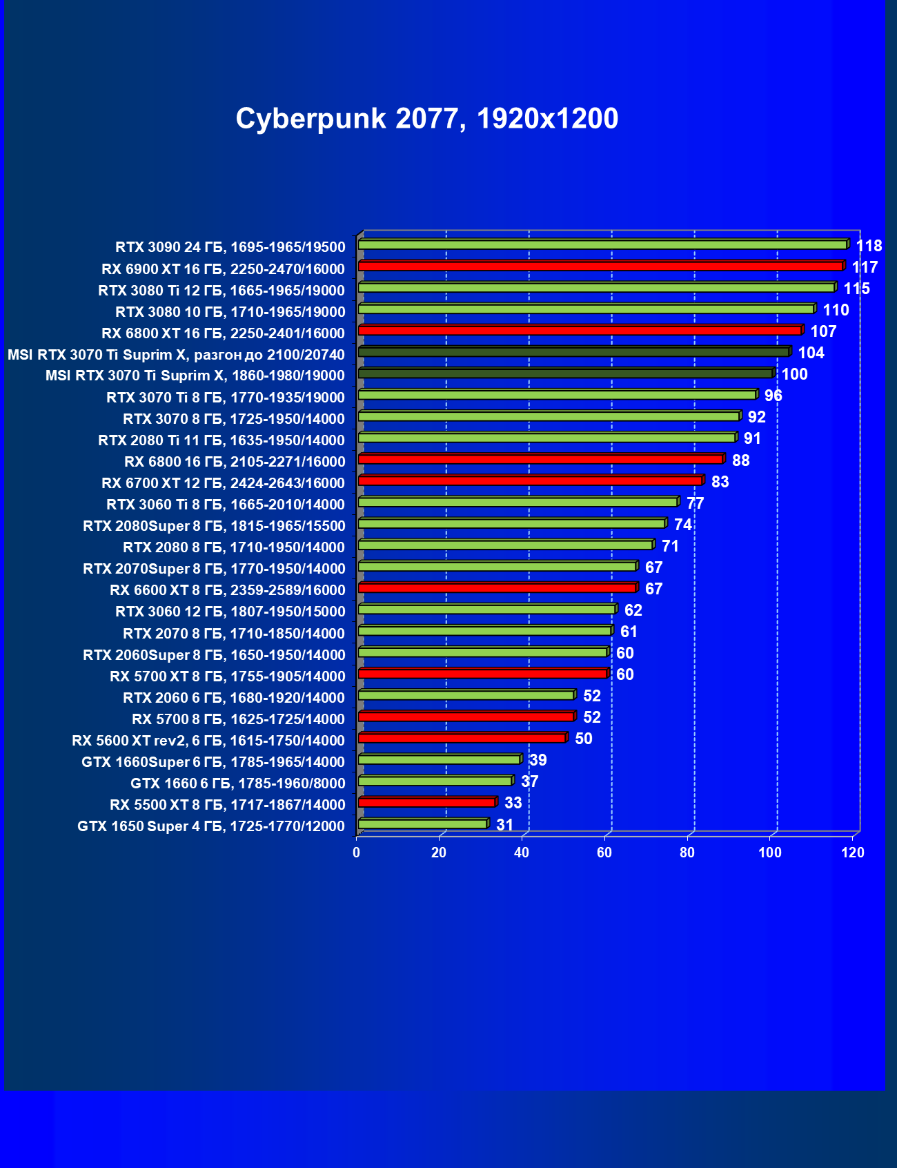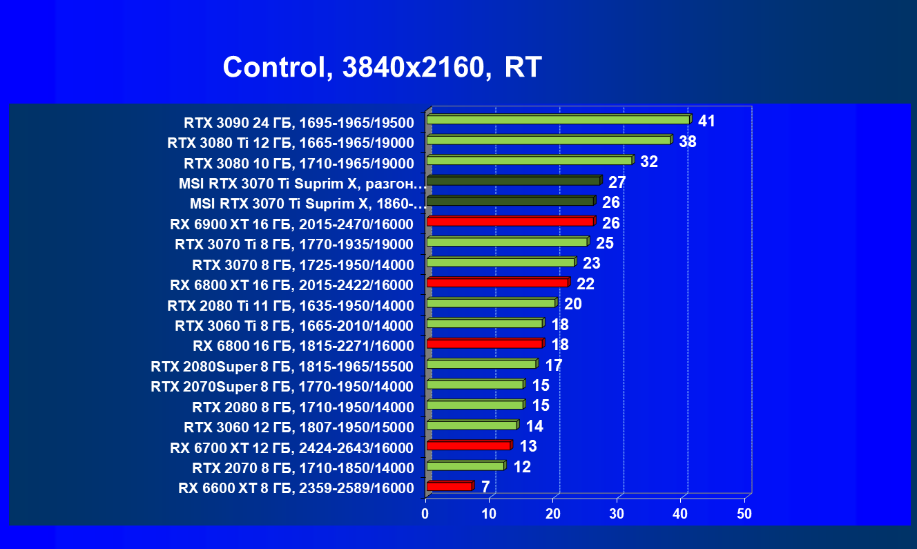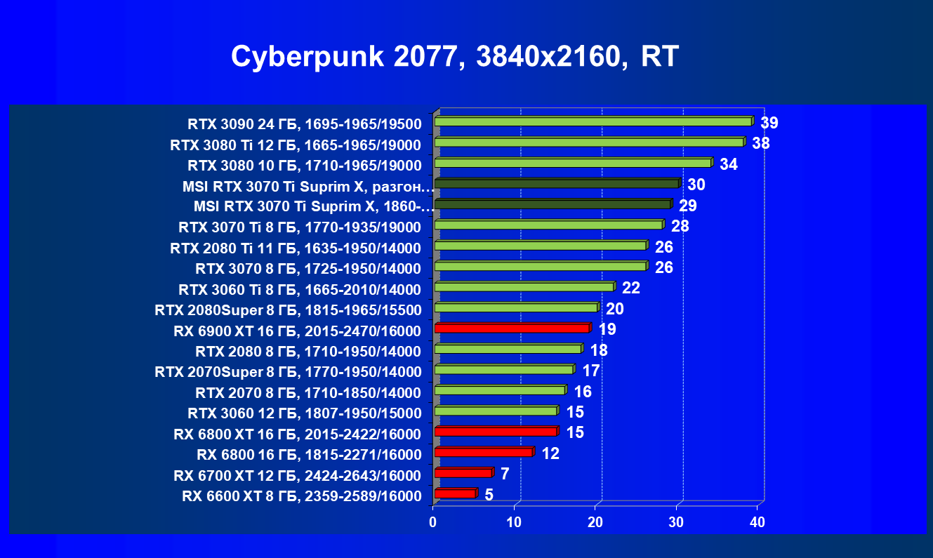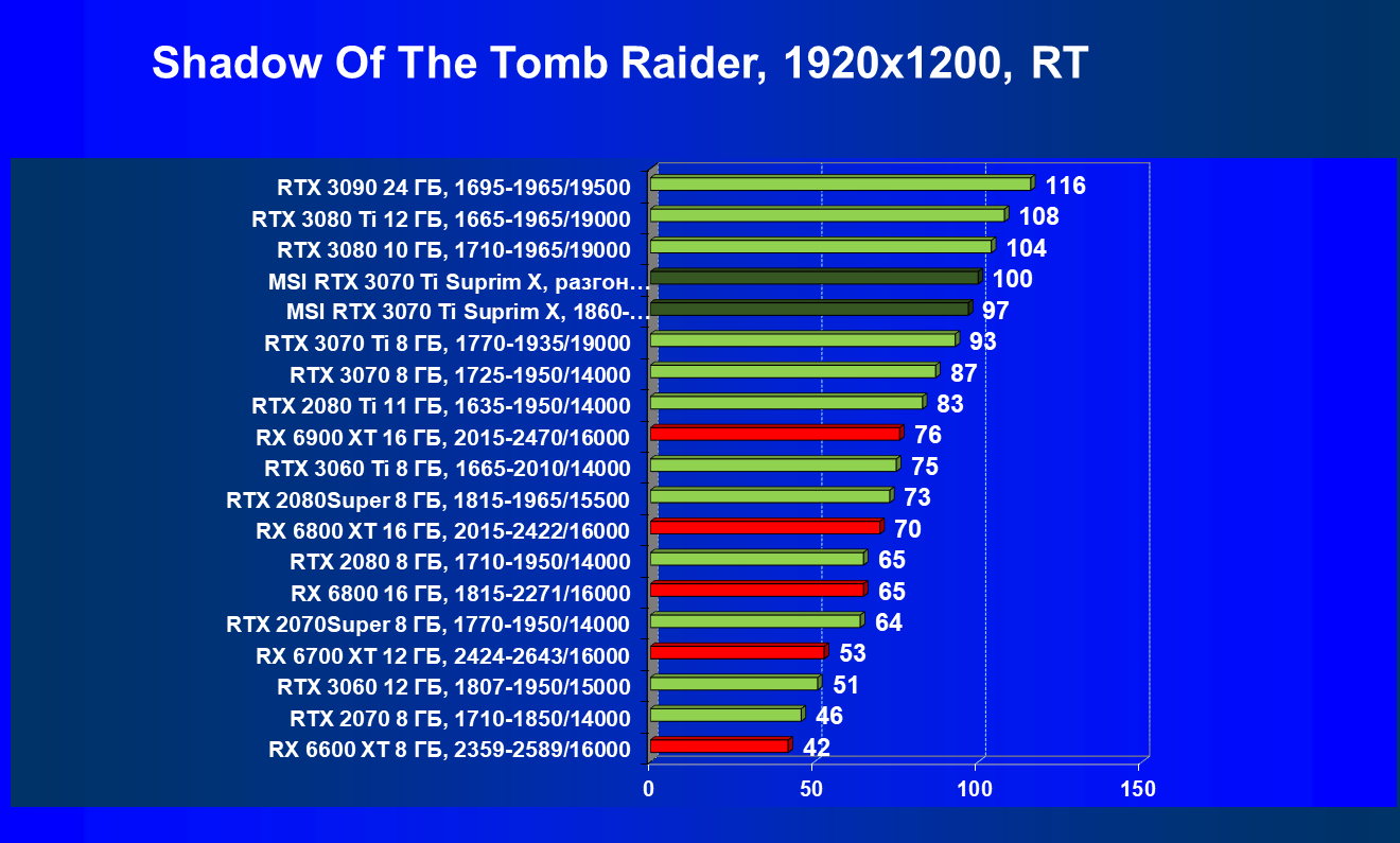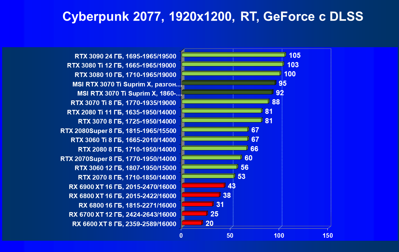 | 02 | MSI RTX 3070 Ti Suprim X, 1860—1980/19000 | 19 | 198 | 105 000 |