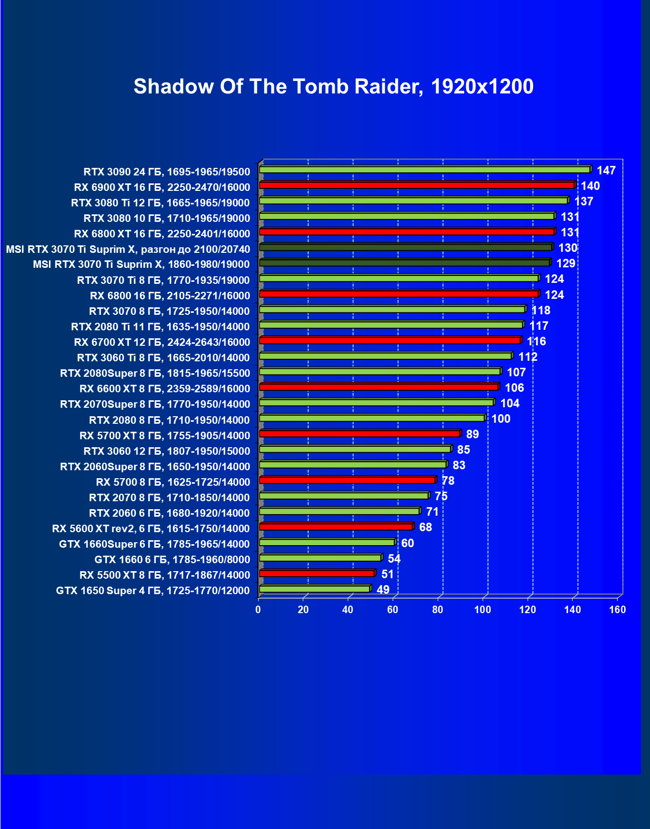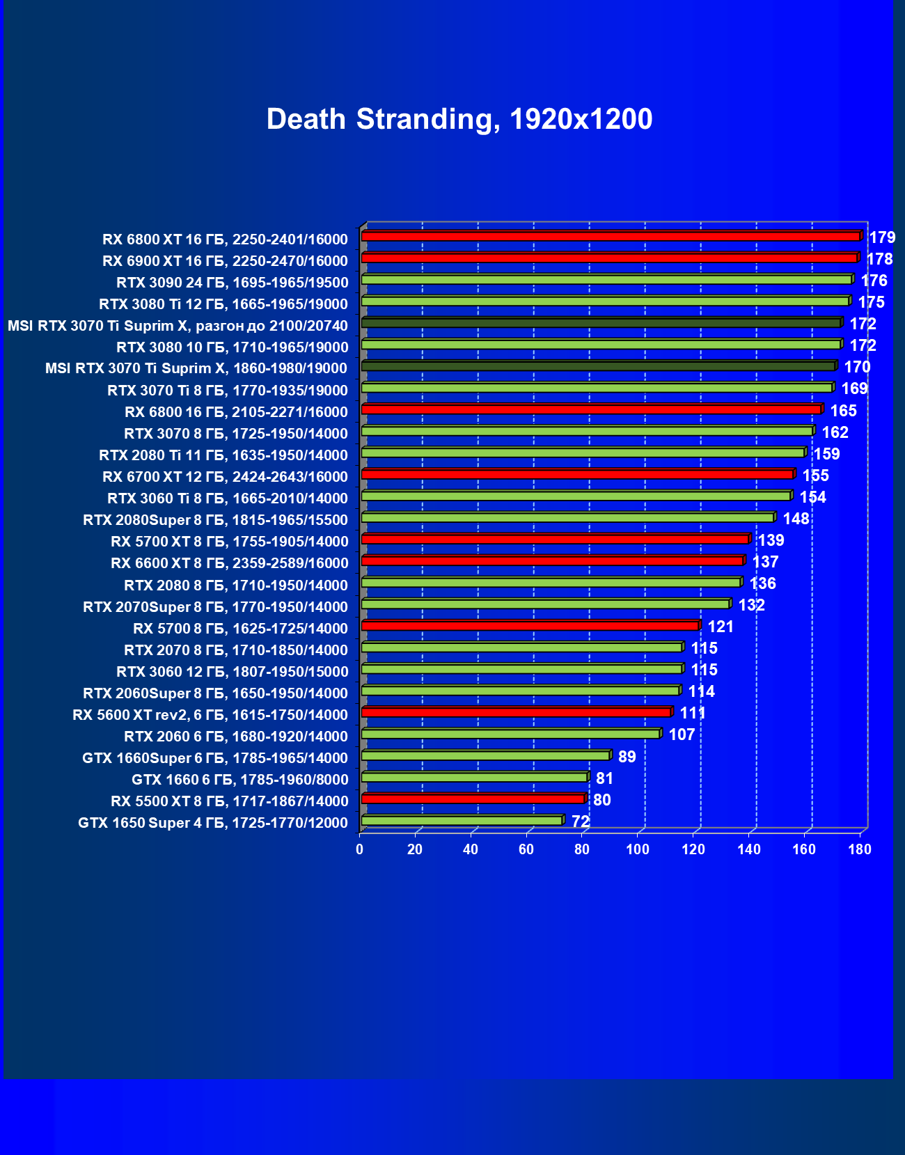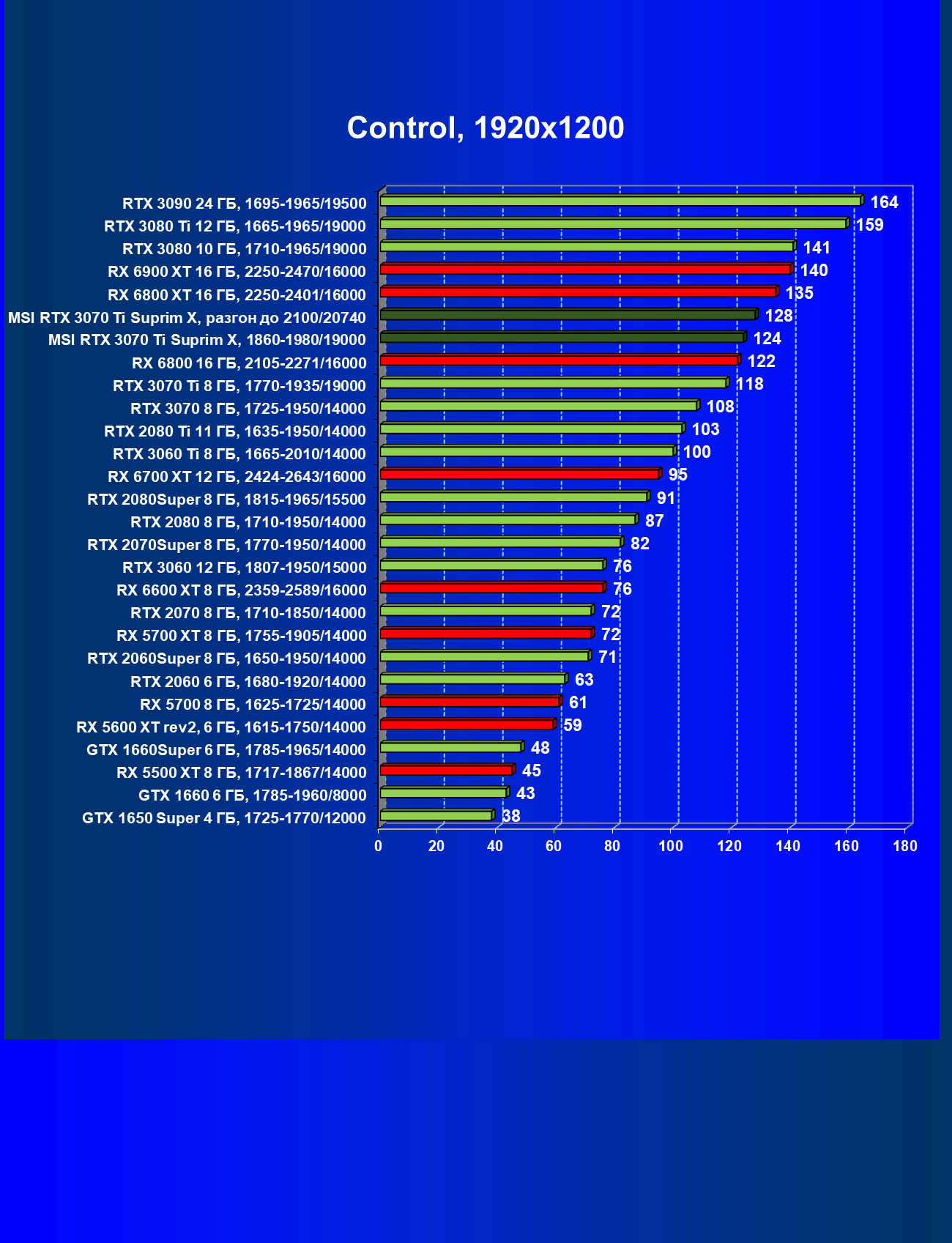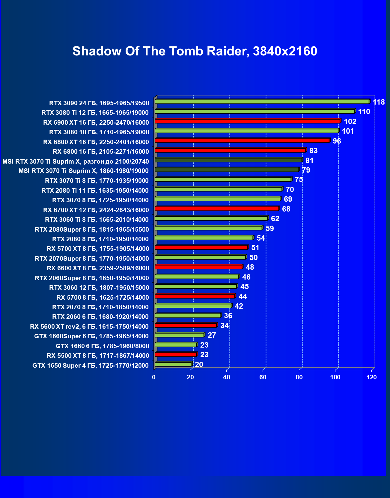 | 02 | MSI RTX 3070 Ti Suprim X, 1860—1980/19000 | 19 | 198 | 105 000 |