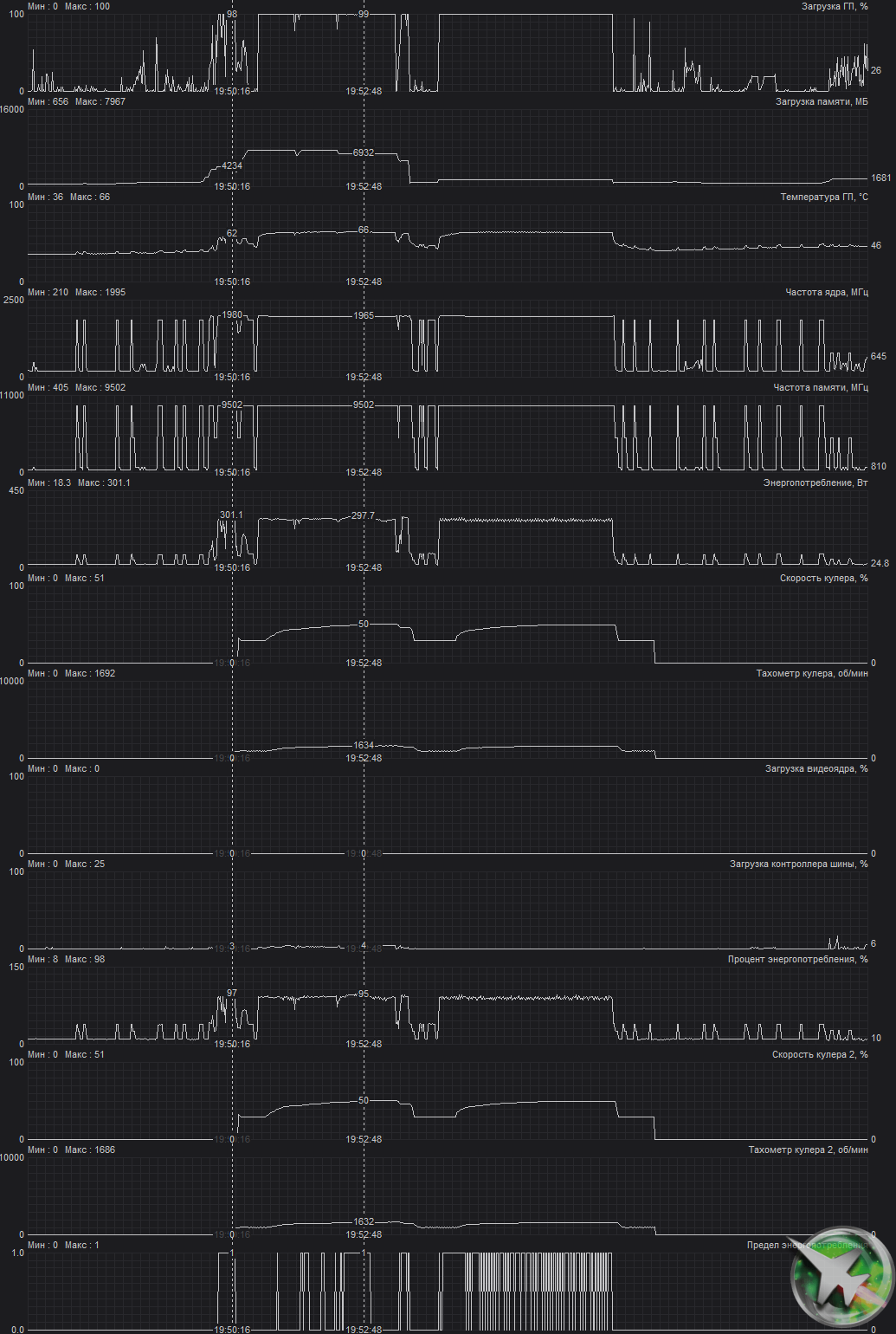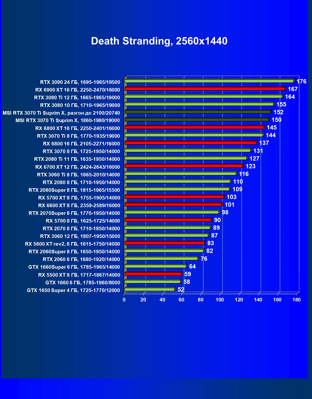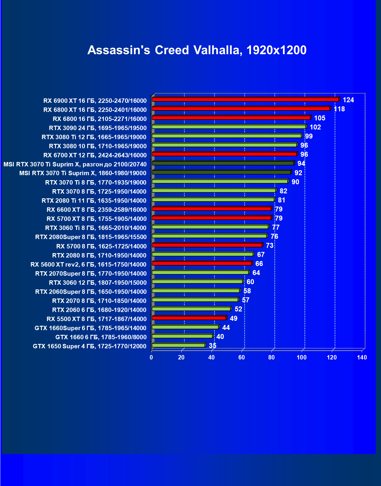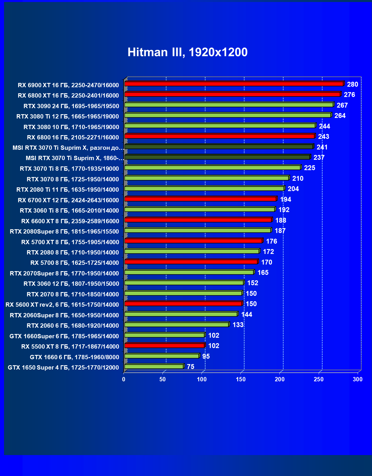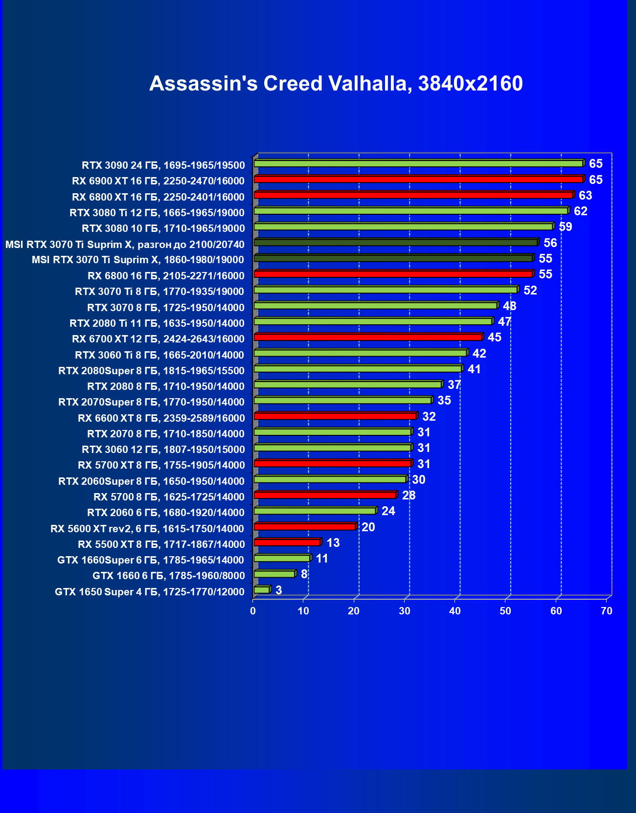 | 02 | MSI RTX 3070 Ti Suprim X, 1860—1980/19000 | 19 | 198 | 105 000 |