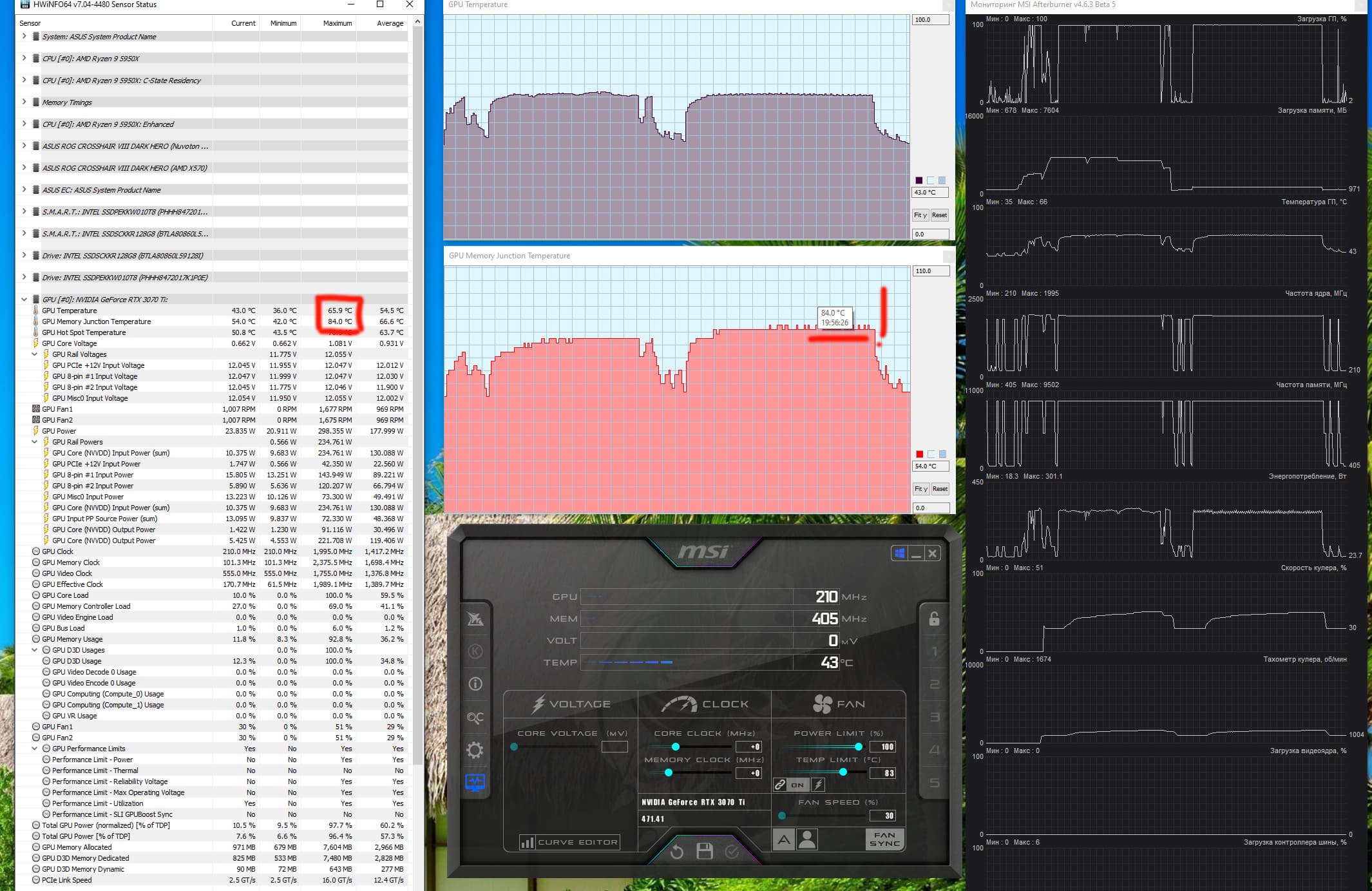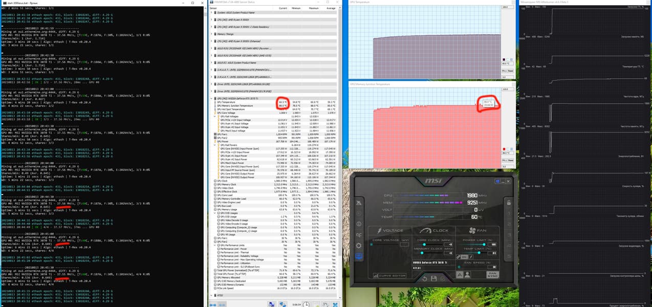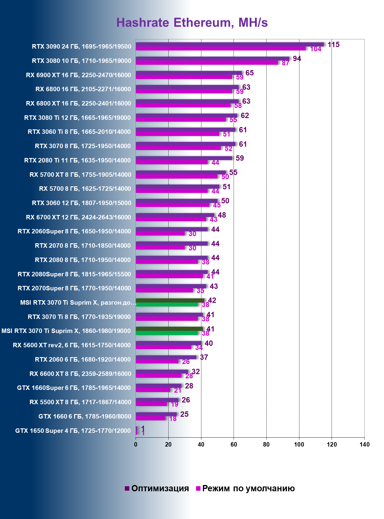 | 04 | MSI RTX 3070 Ti Suprim X, 1860—1980/19000 | 42 | 440 | 105 000 |