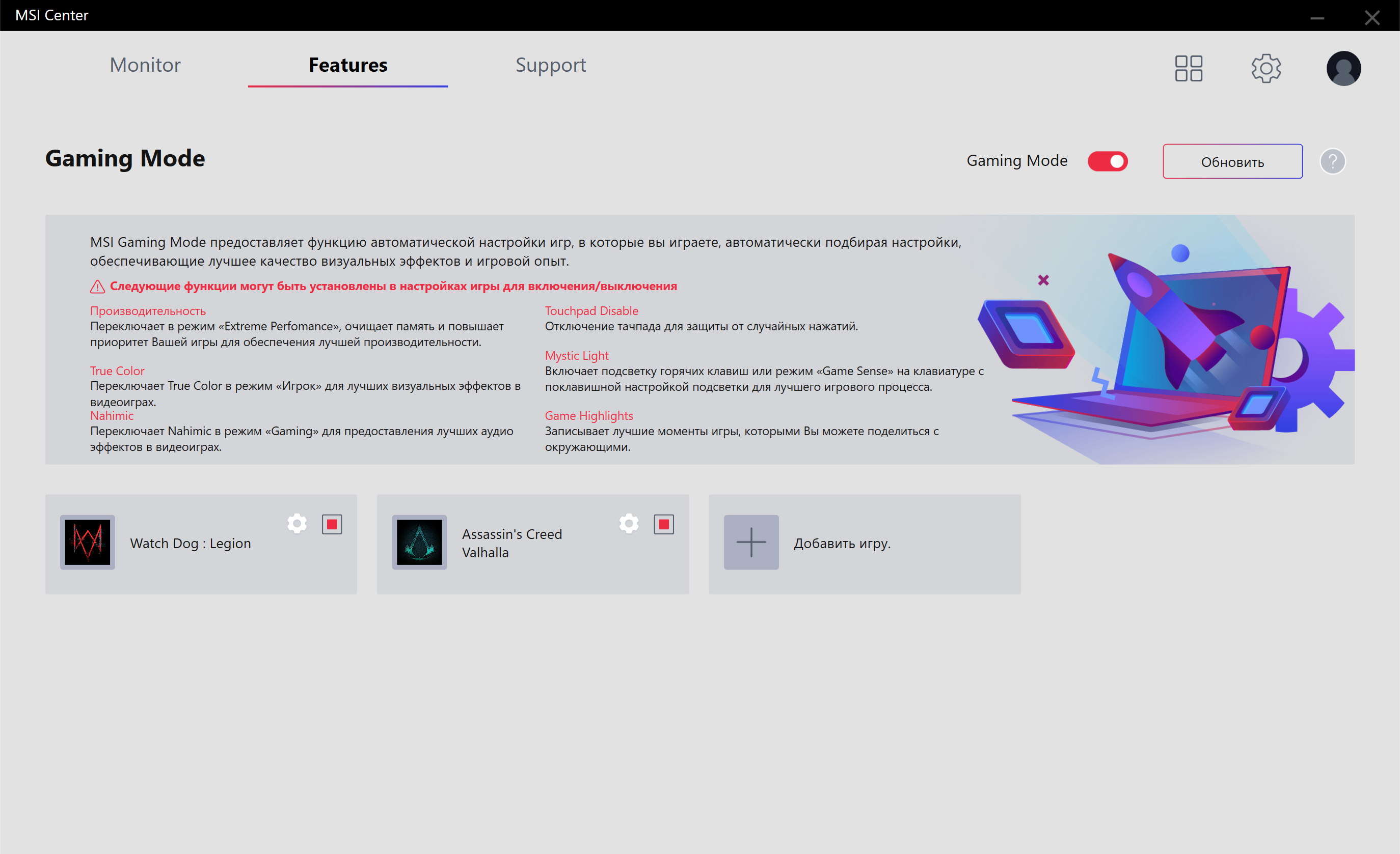 Режим Gaming mode: