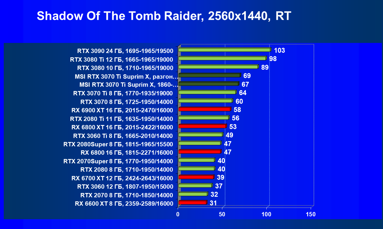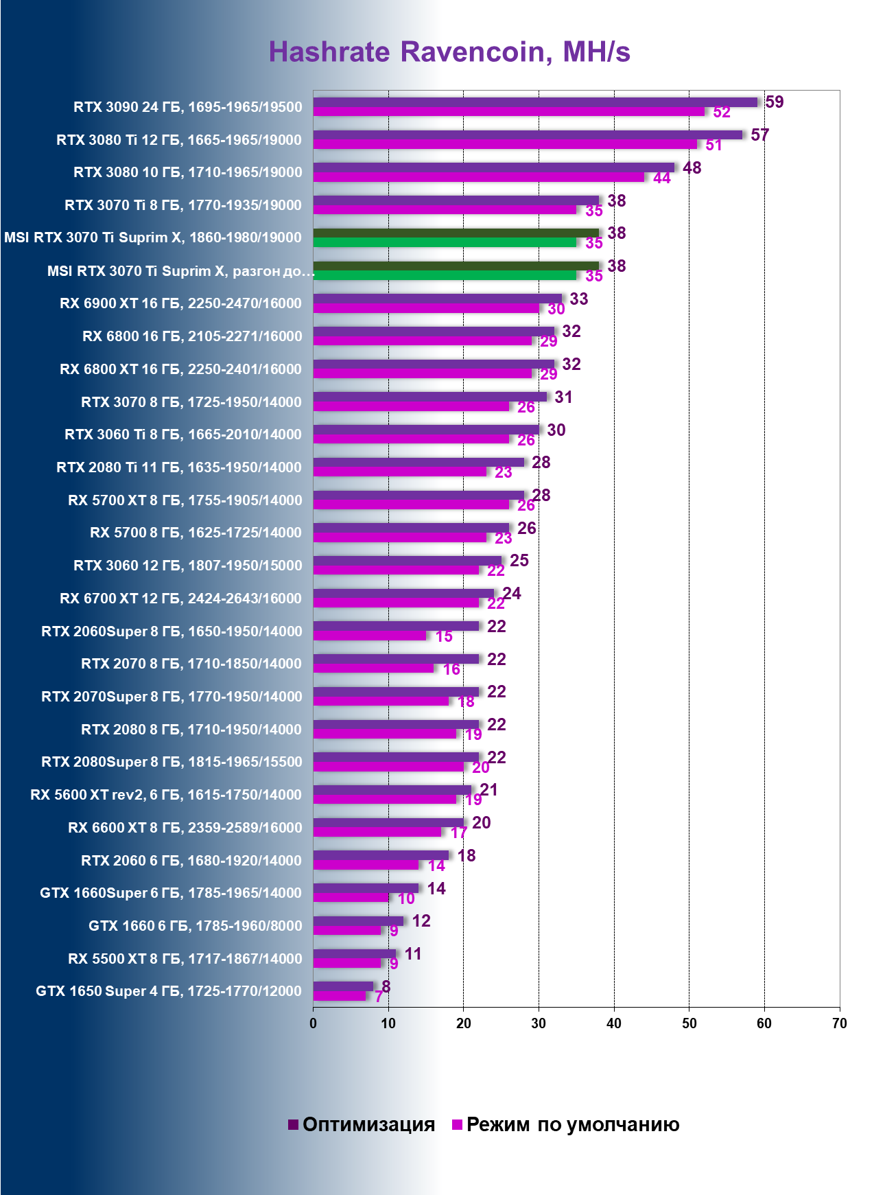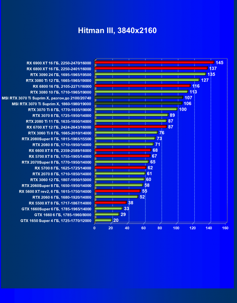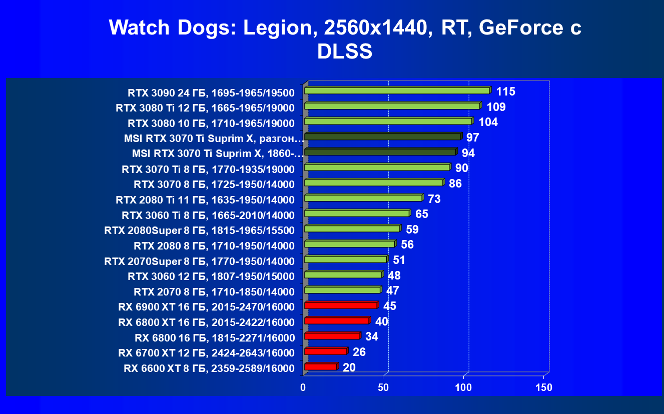 | 03 | MSI RTX 3070 Ti Suprim X, разгон до 2100/20740 | 43 | 451 | 105 000 |