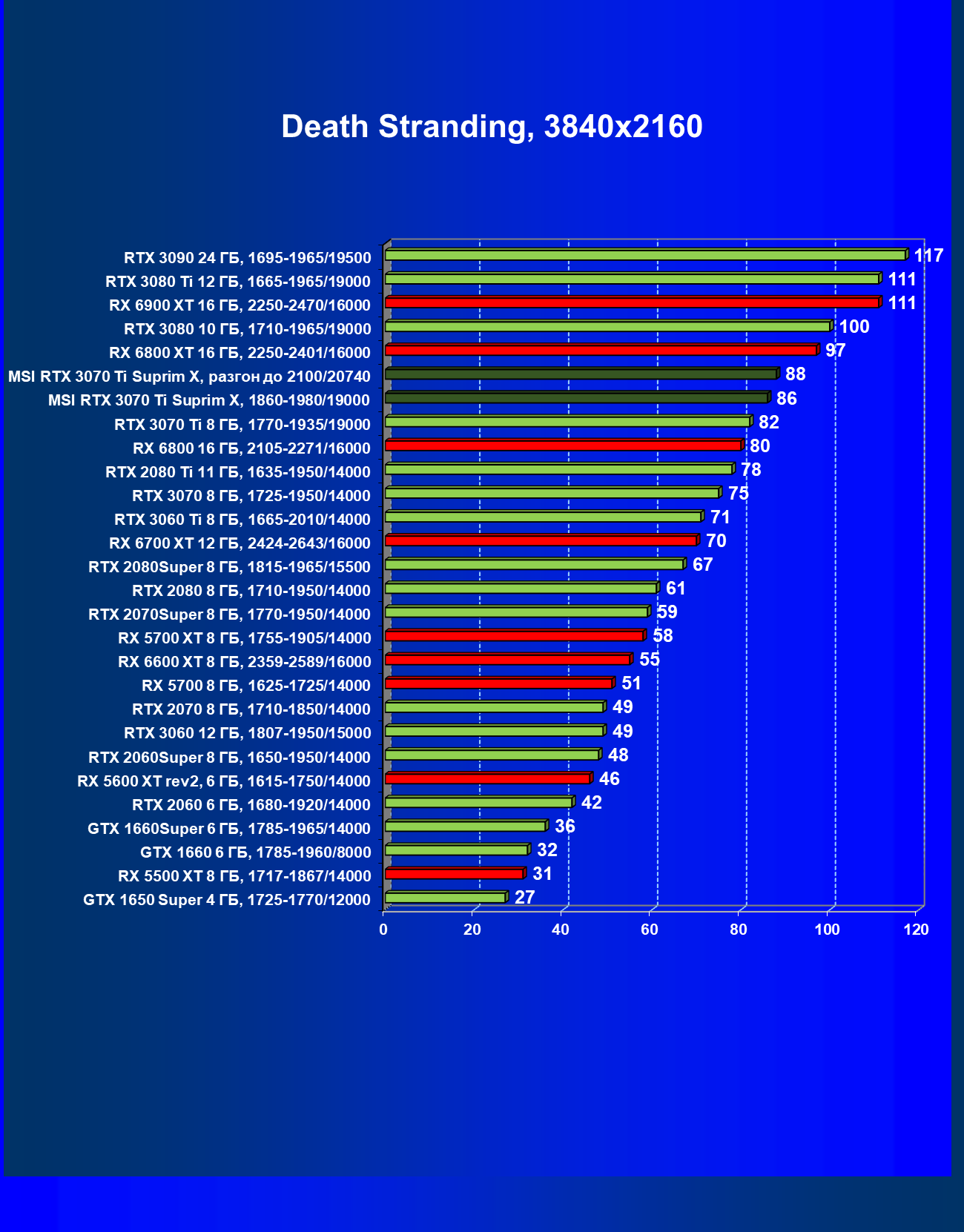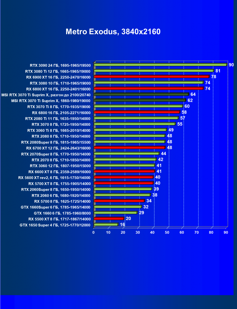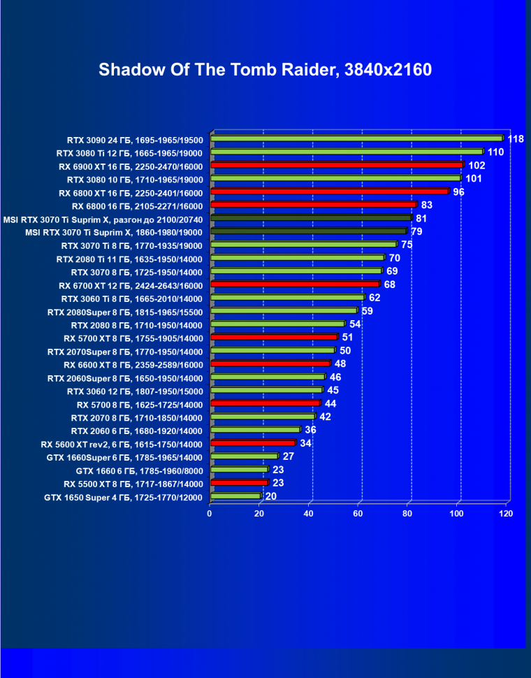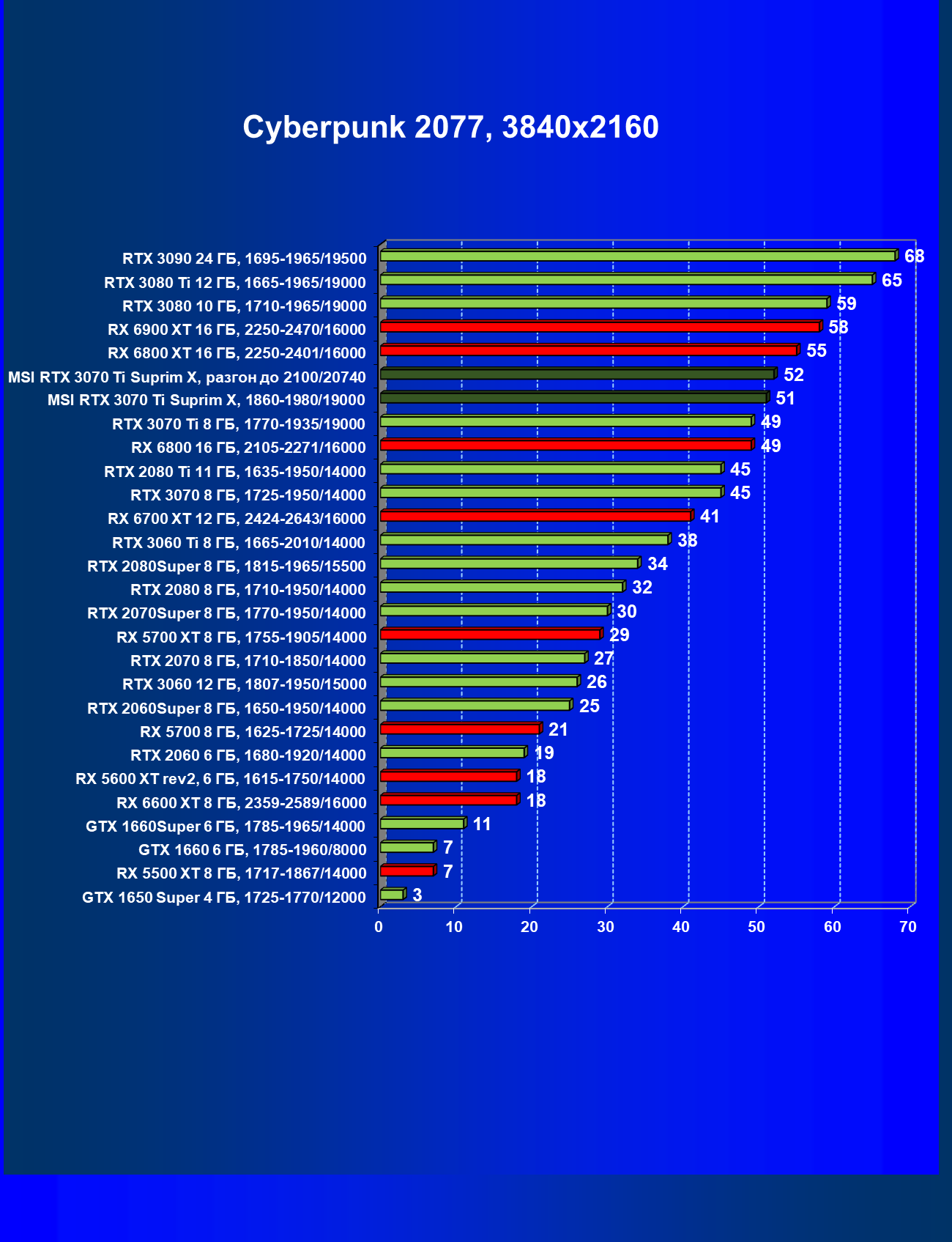 | 03 | MSI RTX 3070 Ti Suprim X, разгон до 2100/20740 | 43 | 451 | 105 000 |