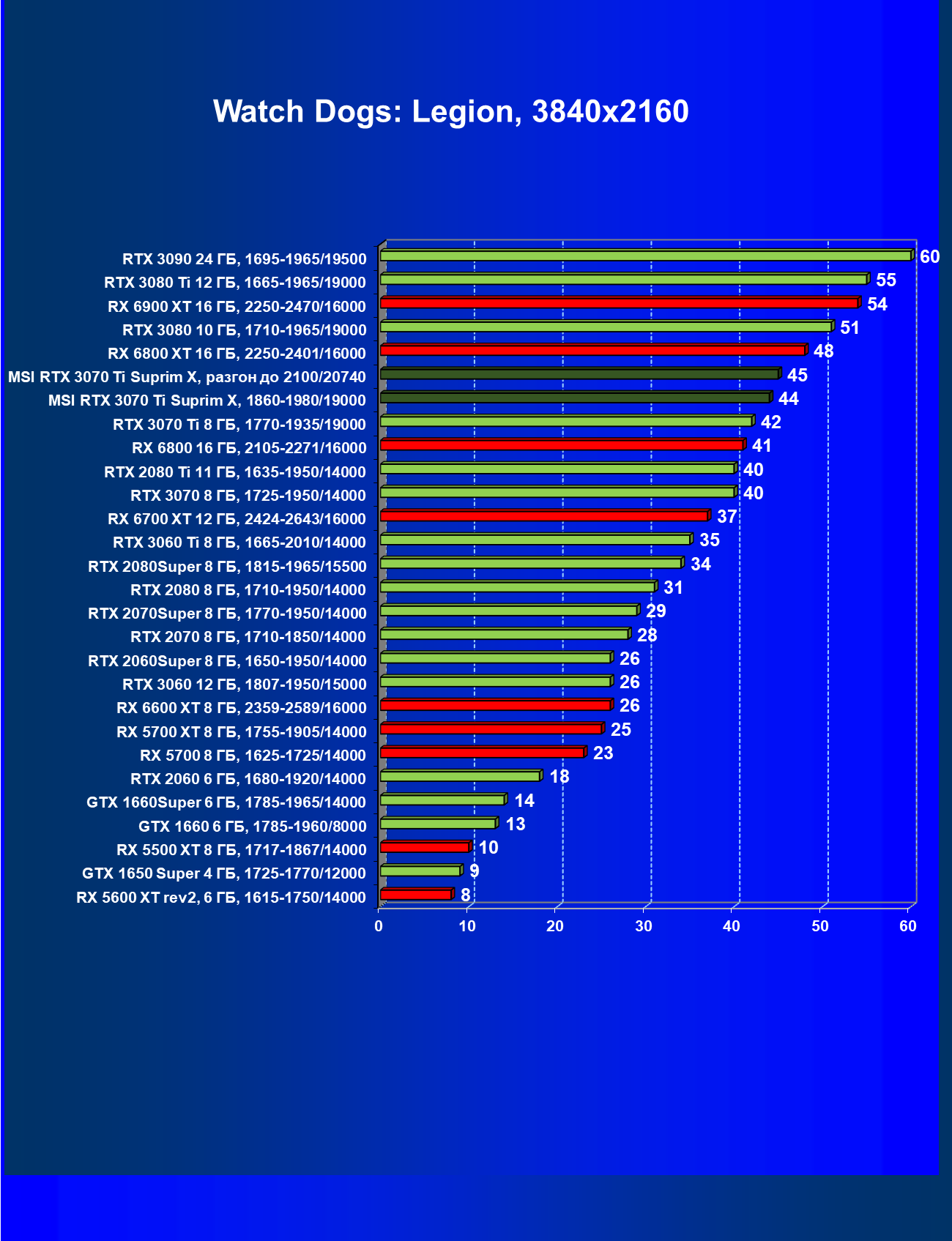 | 08 | MSI RTX 3070 Ti Suprim X, 1860—1980/19000 | 470 | 45 | 105 000 |