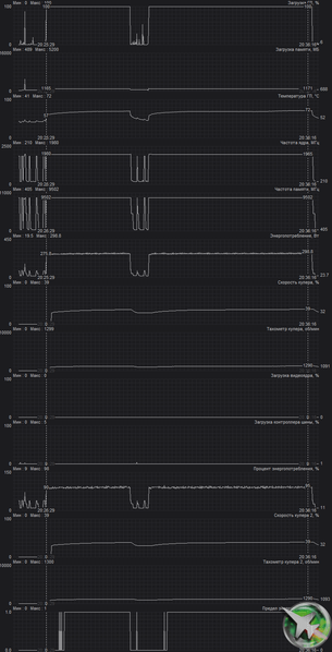 При ручном разгоне (режим Gaming) параметры нагрева и шума менялись очень мало, максимальное потребление выросло лишь до 306 Вт.