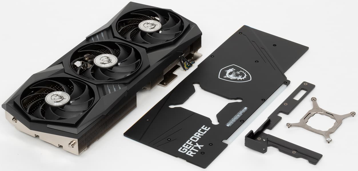 Видеокарта MSI имеет немного повышенные частоты работы GPU, это обеспечивает небольшой прирост производительности. Важнее — стабильность работы, а для этого у карты есть хорошая система питания (включая три коннектора питания, что позволяет несколько снизить нагрузку на каждый) и надежное охлаждение. А в комплекте поставки идет кронштейн-опора для монтажа в системный блок.