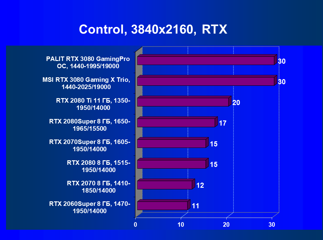 Повторим, что GeForce RTX 3080 в целом обеспечивает игроку полный комфорт при максимальных настройках графики в разрешении 4K во всех играх.