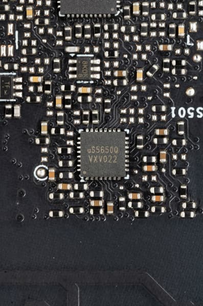 Также имеются два контроллера uS5650Q (uPI Semiconductor), отвечающие за мониторинг карты (отслеживание напряжений и температуры).
