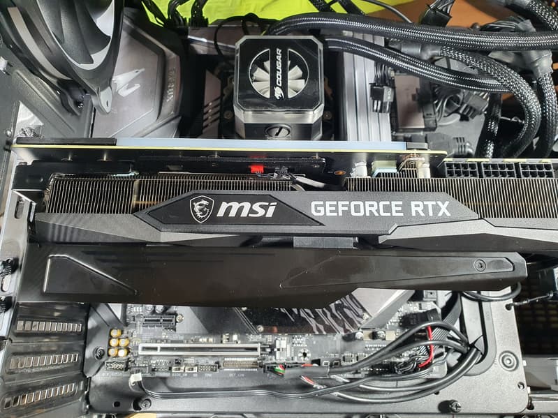 MSI GeForce RTX 3080 Gaming X Trio (10 ГБ) — отличный представитель самого быстрого игрового ускорителя на сегодня. Видеокарта имеет эффективную систему охлаждения, которая, впрочем, заметно увеличила габариты этой модели, так что при покупке следует иметь в виду длину платы более 30 см, высоту 14 см и трехслотовое размещение в корпусе.