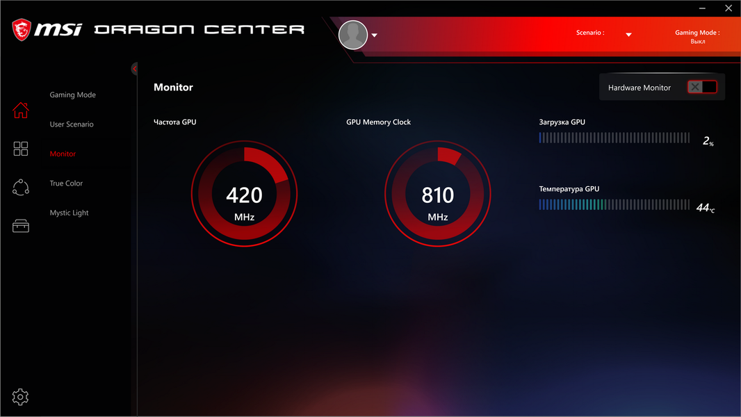 Управление работой карты обеспечивается с помощью хорошо известной фирменной утилиты MSI Dragon Center.