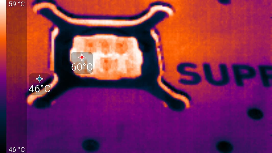 Максимальный нагрев наблюдался в центральной части PCB, в основном около ядра.