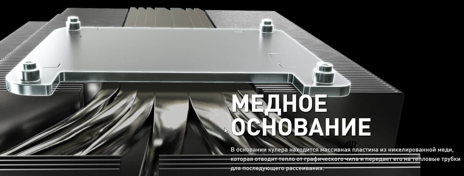 Задняя пластина служит не только элементом защиты PCB, но и участвует в охлаждении оборотной стороны платы через термоинтерфейс с участием тепловой трубки. Следует отметить, что из-за возросшей площади кристалла GPU стали применять «четырехлапый» прижим-амортизатор, который помогает равномерно распределять прижим подошвы радиатора по всей площади кристалла.