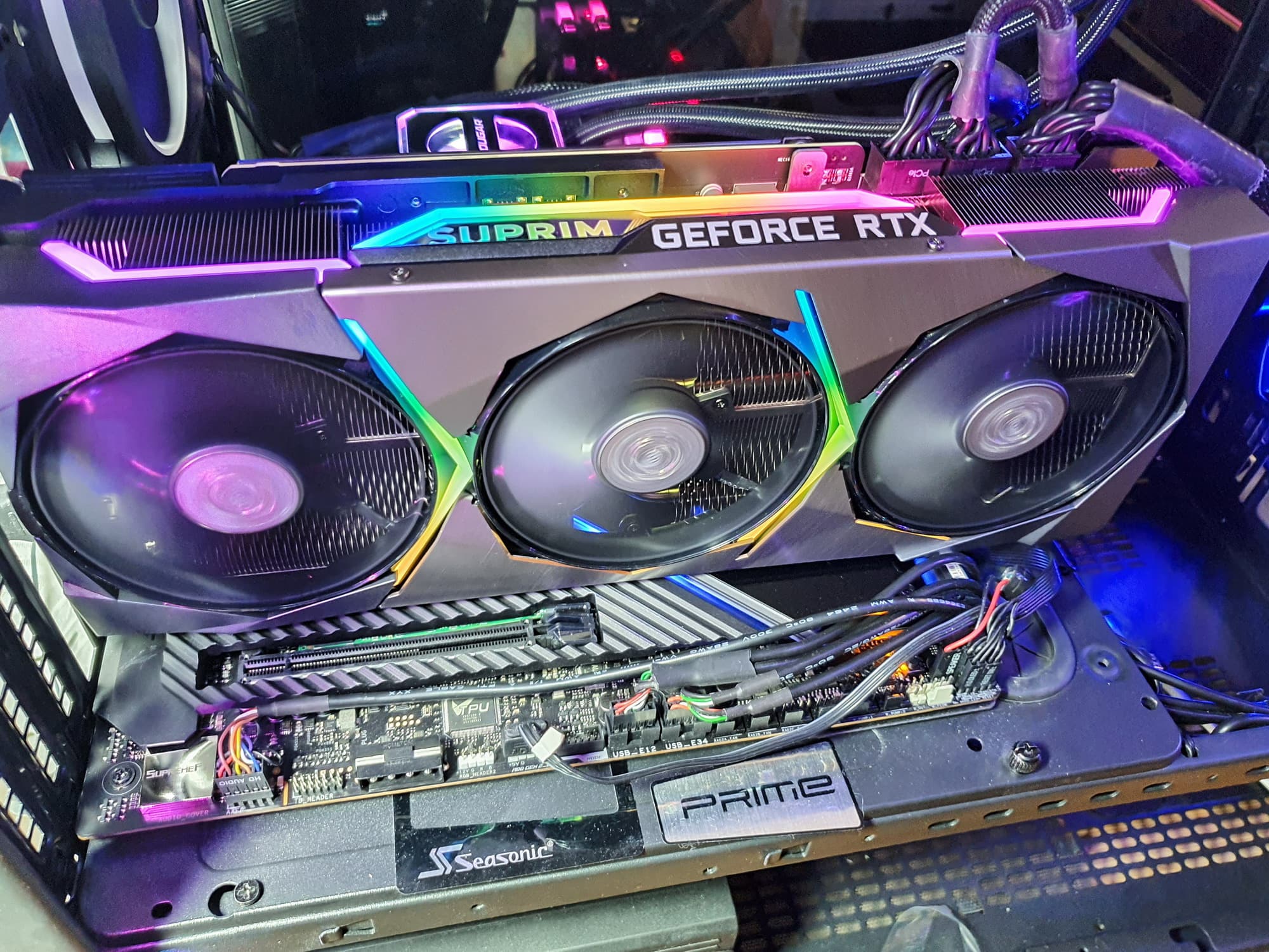 Новая серия видеокарт Suprim, как я понимаю, пришла на смену прежней флагманской серии Lighting, которая была хорошо известна своими световыми эффектами.