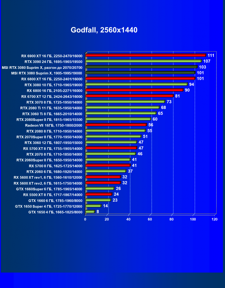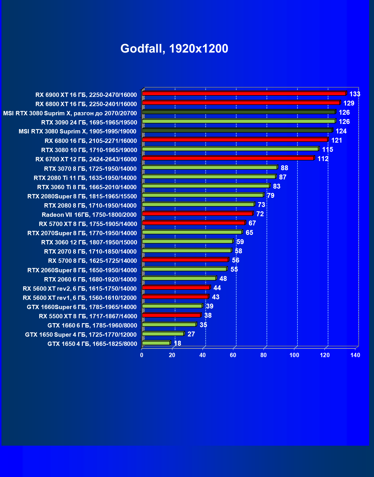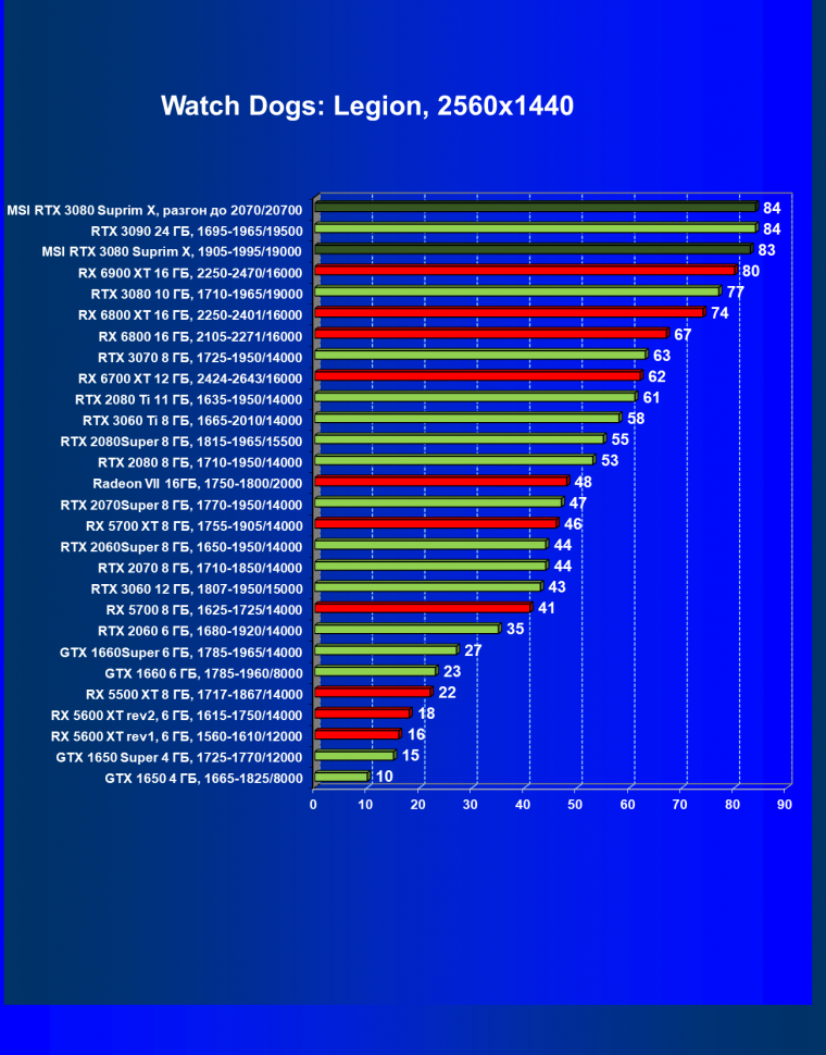 | 11 | RX 6800 XT 16 ГБ, 2015—2422/16000 | 11 | 155 | 135 000 |