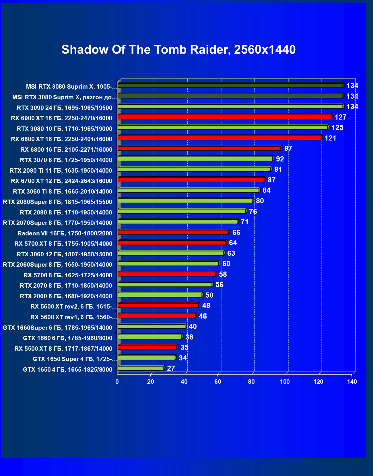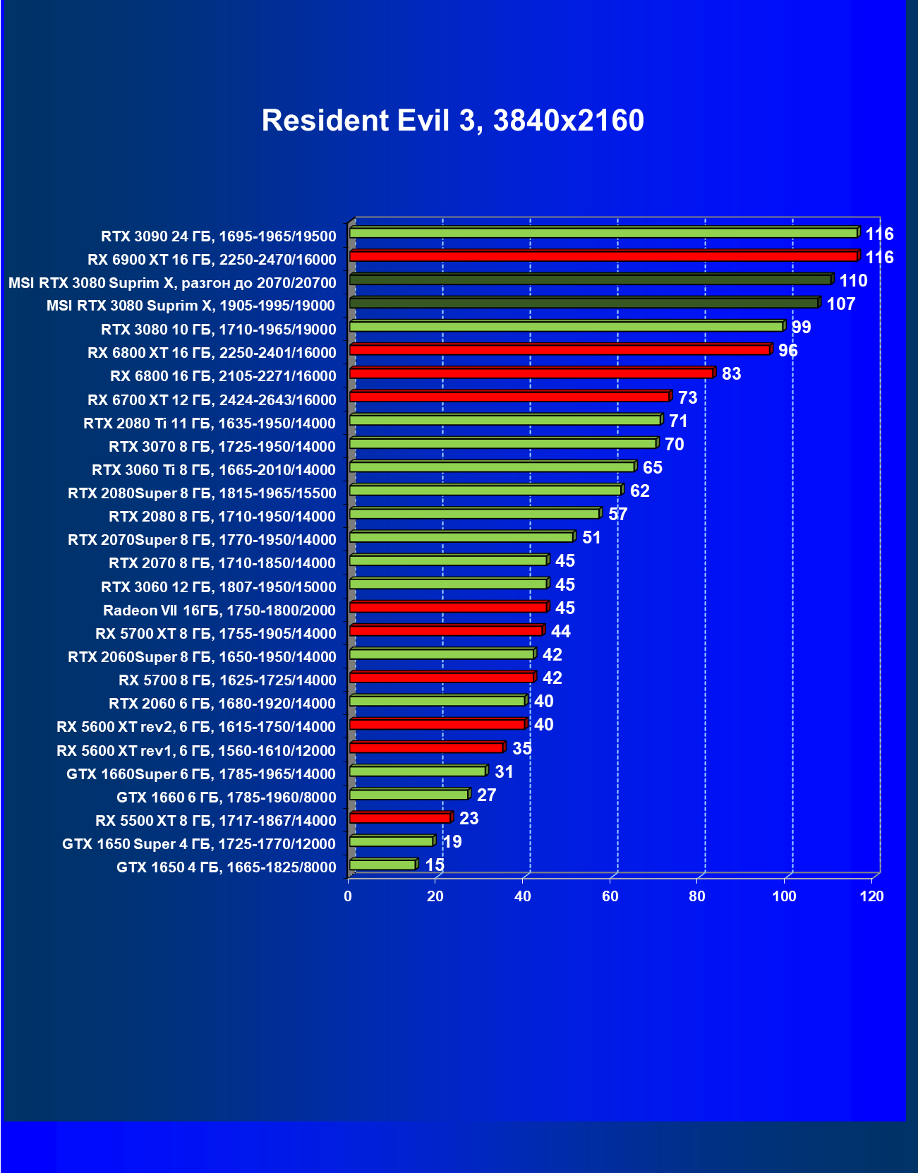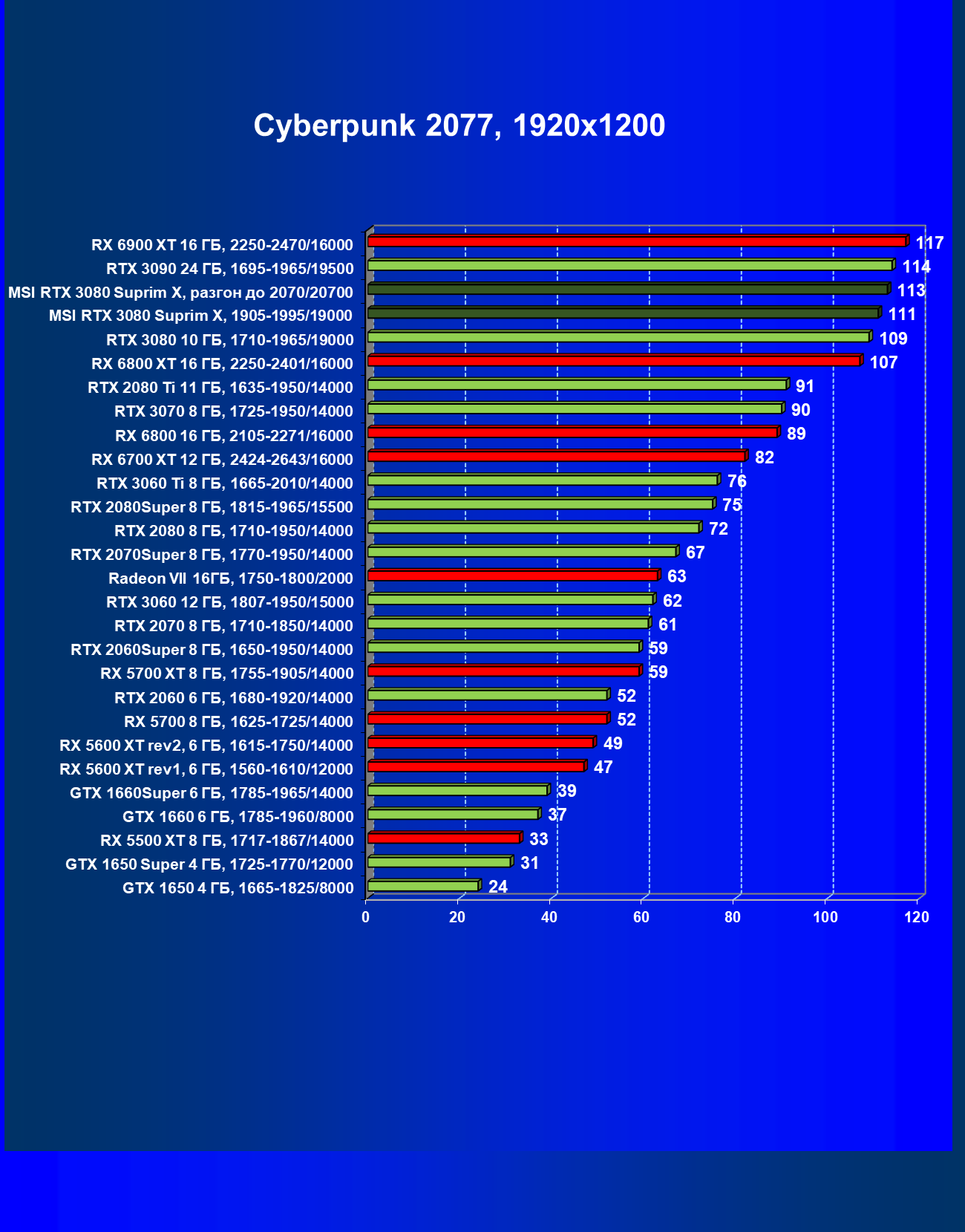 | 11 | RX 6800 XT 16 ГБ, 2015—2422/16000 | 11 | 155 | 135 000 |