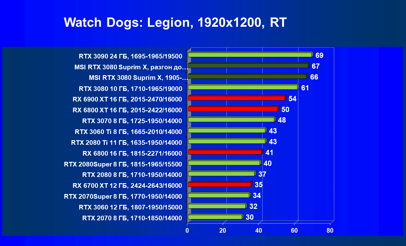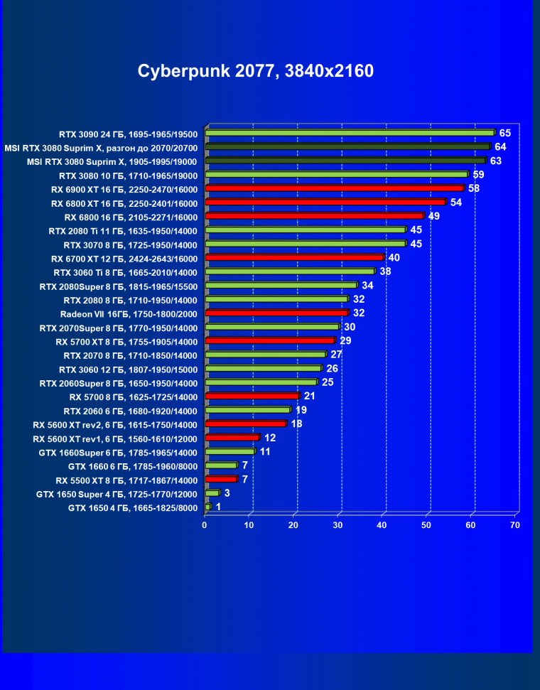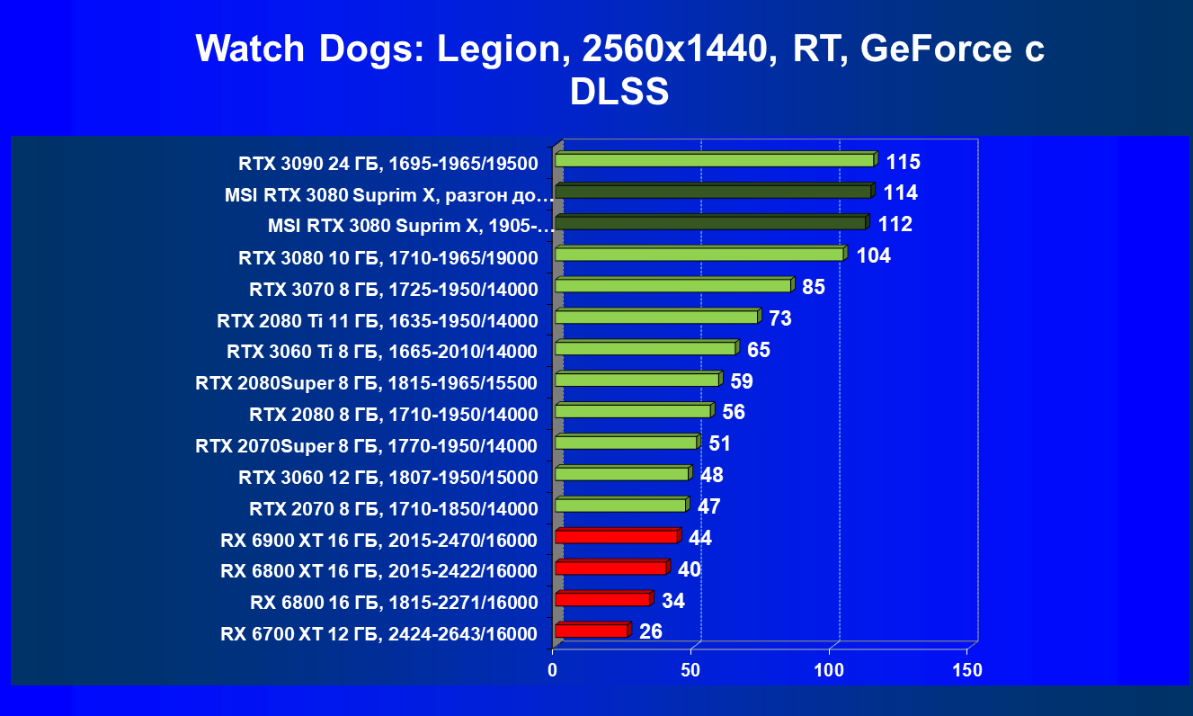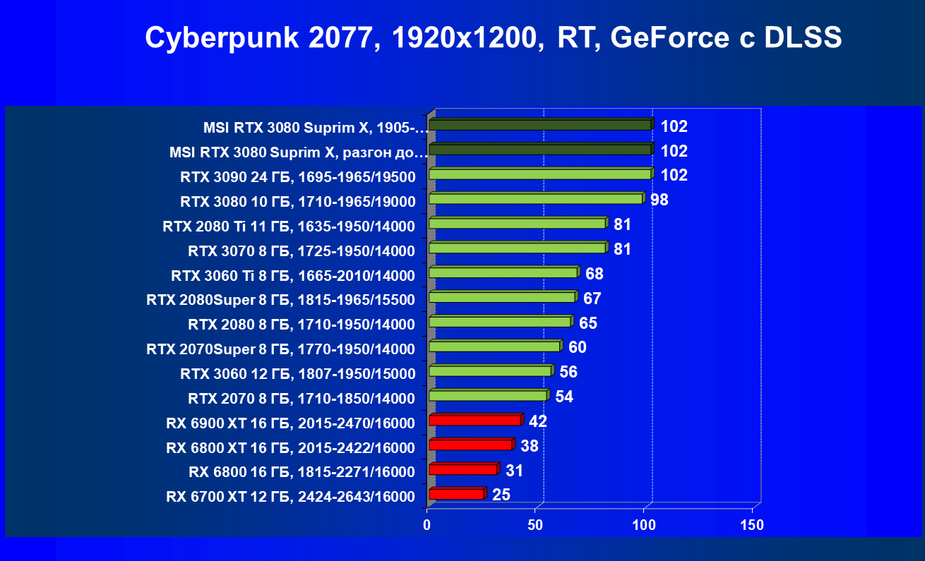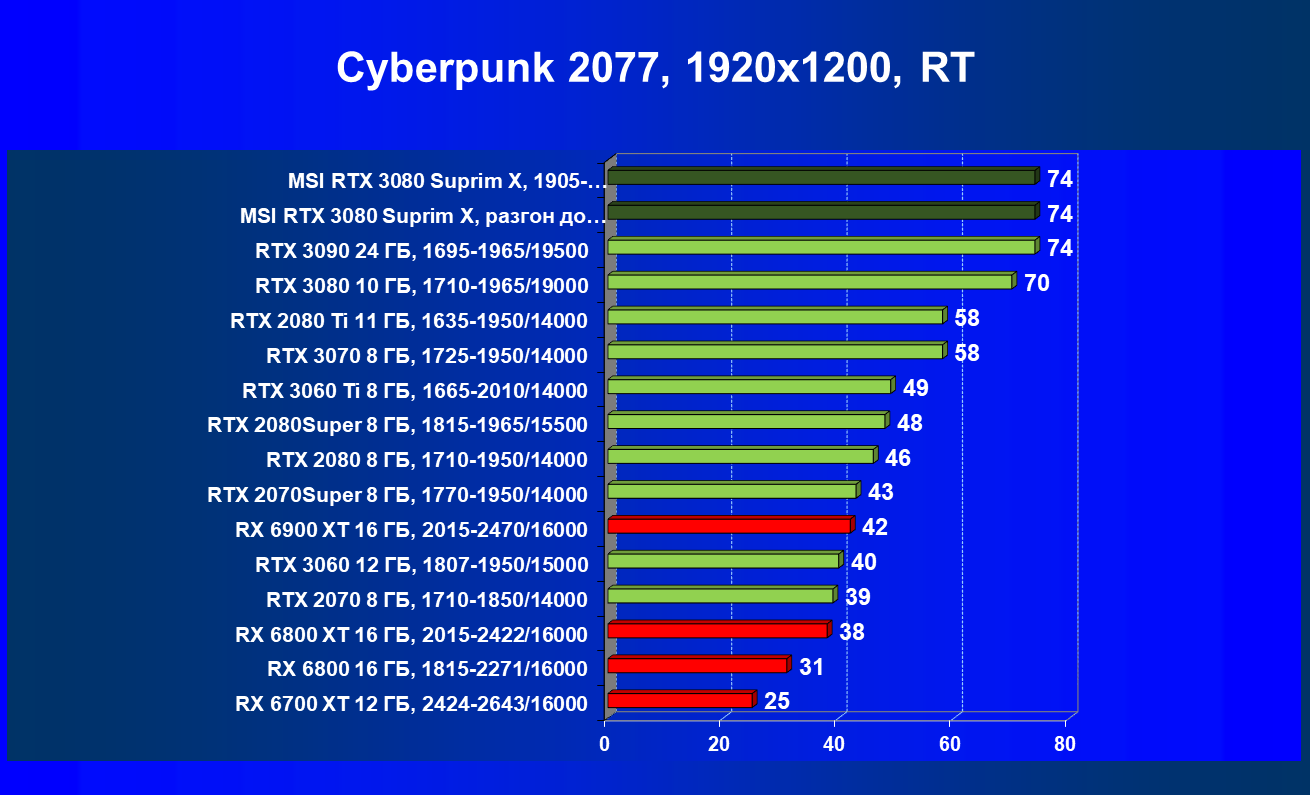 | 11 | MSI RTX 3080 Suprim X, 1905—1995/19000 | 81 | 1694 | 210 000 |